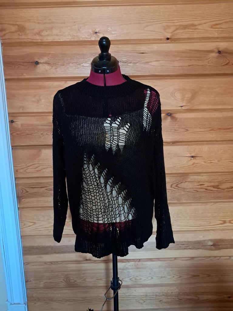 Punk Goth Sweater Women Oversize Loose Hole Hollow Pullover Loog Sleeve Hip Pop Knitted Autumn Black White Female