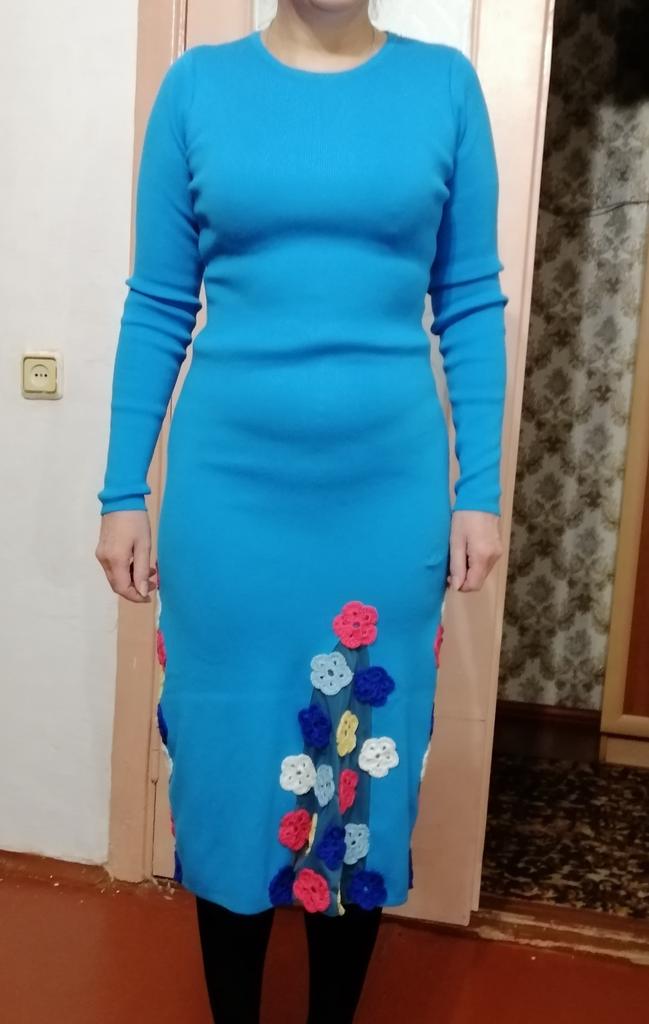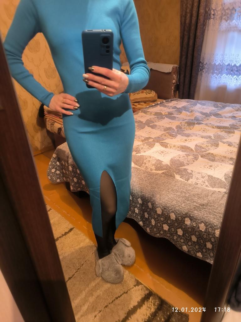 @any.mary.u my instagram page with more reviews Elegant Dress with elastic material β’ one size. My size 84-60-85 , 167 cm fit perfectly. More Suitable for high girls . β’ details: - The lenght of sleeves is Ideal; - super Elastic material; - there is attractive cut in front; Very comfortable and stylish. Quality 10+. I really recommend it