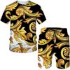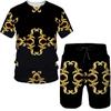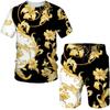 Mens T Shirts and Shorts Set Fashion Golden Pattern Luxury Floral 3D Print Tracksuit Casual Streetwear Male Men Clothing Suit