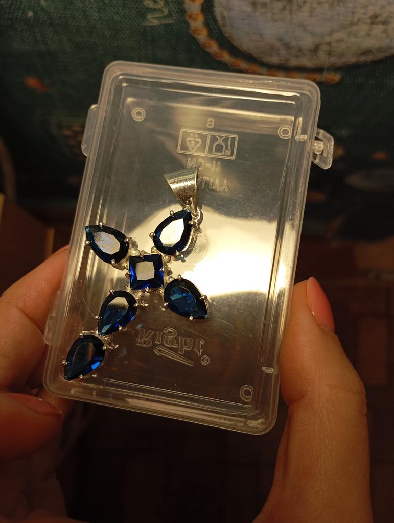 The cross is smaller than the others((. The stones are whole, with a small scratch on top (not very noticeable)! The bail is relief and neat. For this money it is quite possible to buy)
