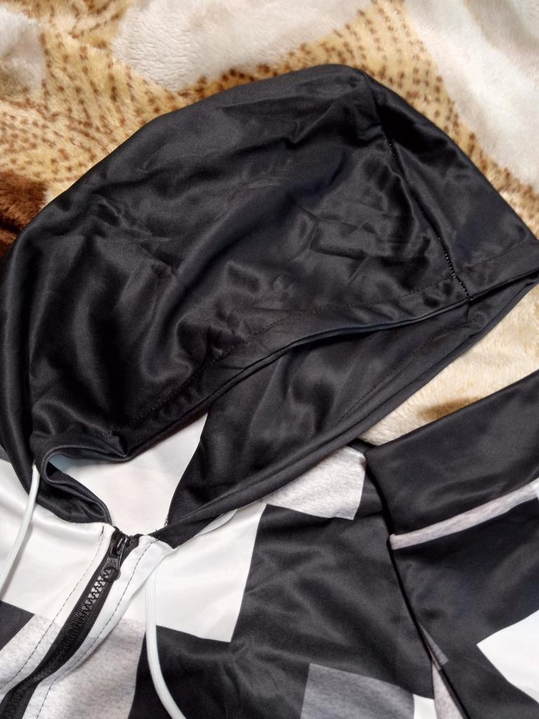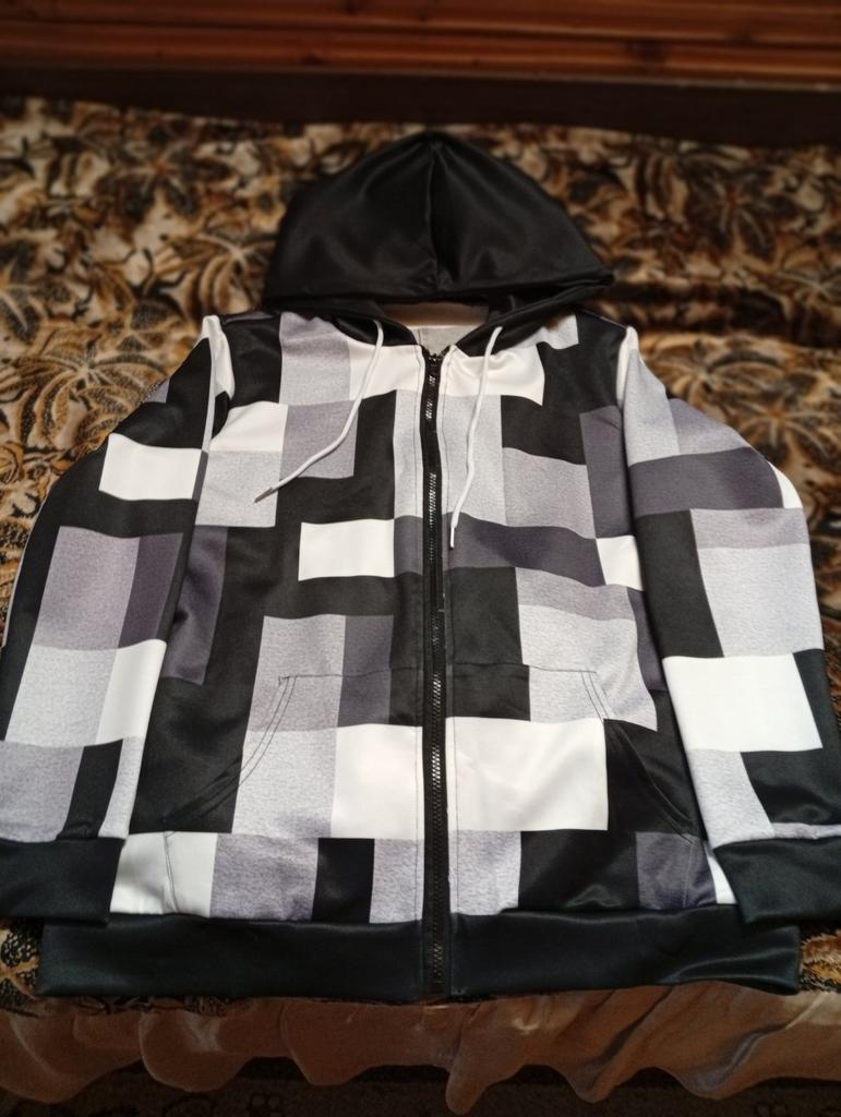 The blouse is not bad, but the description says "sweatshirt", which does not correspond to the received product. The blouse is very thin, only the drawing corresponds to the picture. The photo shows a jacket with a zipper that is not fully fastened. A black lining is visible on the lapel, but in the received blouse, the lapel is the inside of the blouse. Disappointed.