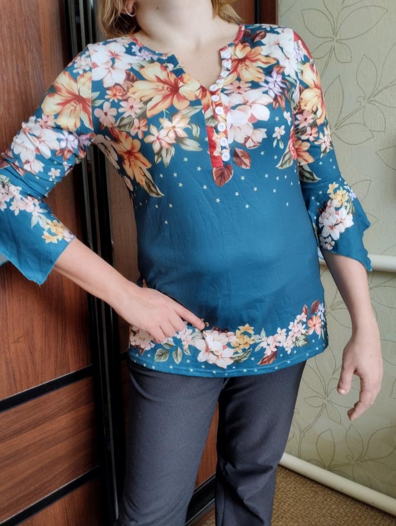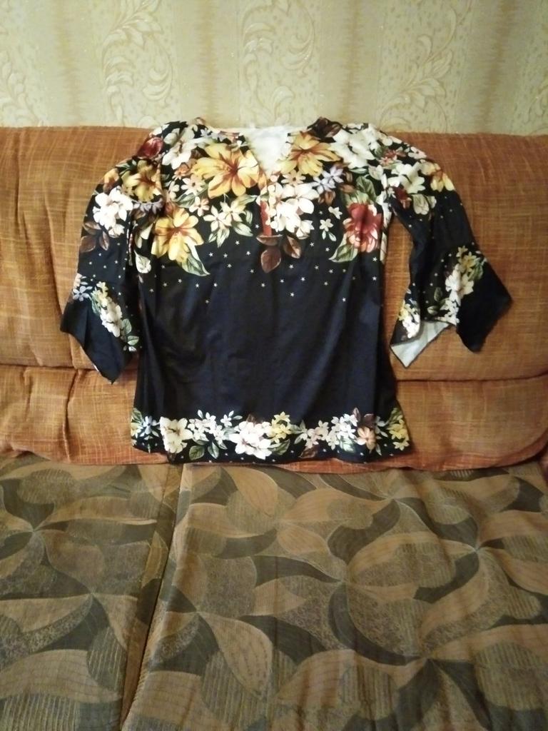 The blouse is not fitted, but straight. The color remained bright even after washing and did not fade. The fabric is nice, but it will have to be sewn in.