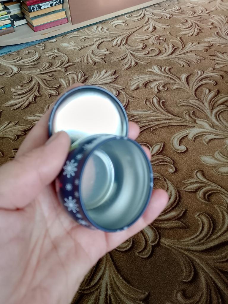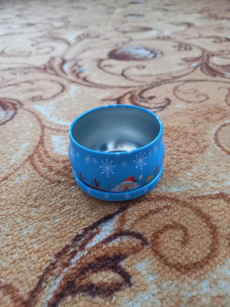 A tin can with a lid. Intended for making candles. I took one to try, made a pretty candle. The can itself is bright, colorful, the lid fits tightly and closes well. I might get ambitious next year, buy different colors and make scented candles. In the comments, there's a lot of outrage from people, saying it's a scam, where's the candle itself. The description states that it is an accessory for making candles, not the candle itself, you need to read more carefully.
