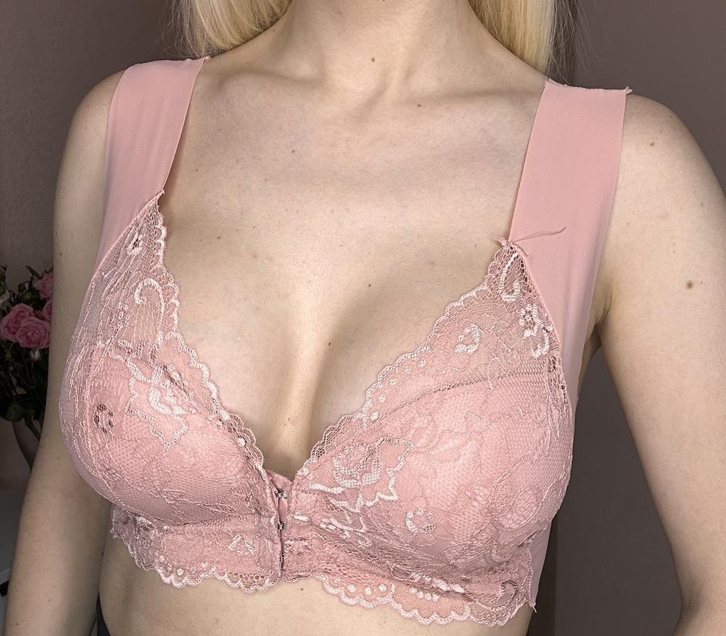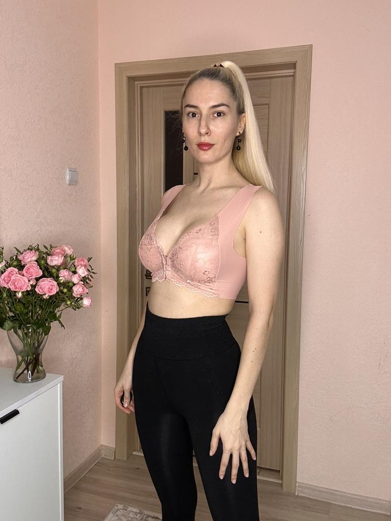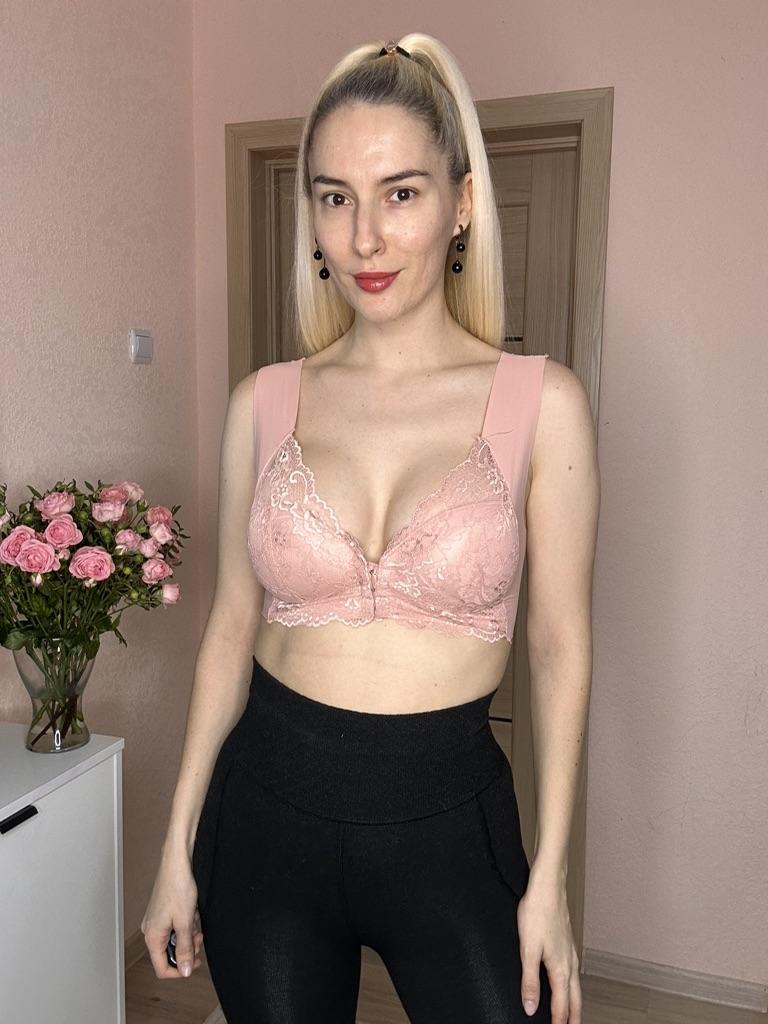 The bra is good. Convenient clasp in front, fits everything. The fabric is thin and you don't feel it on yourself. But it doesn't hold your breasts, you just want to lift them up!!!
