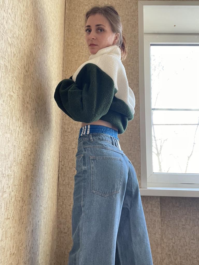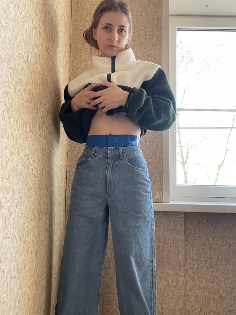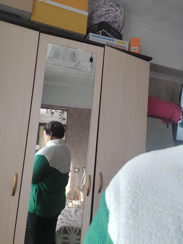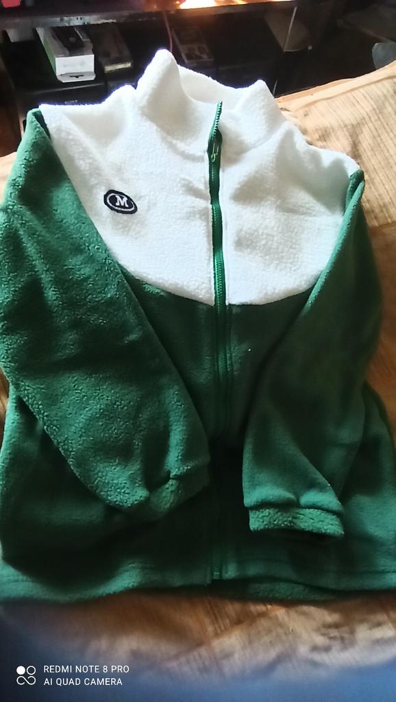 Fits size 52. Bust 106 cm. Warm. But the color in reality is not at all the same as in the photo. Words cannot describe it, it is green (light green). I could not display the same color in my photo.