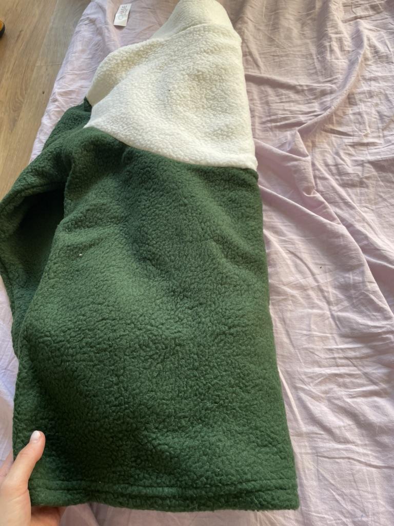The order was for a dark green sweater with a white insert, I received a light green one, the white top does not match the photo (semicircle π)