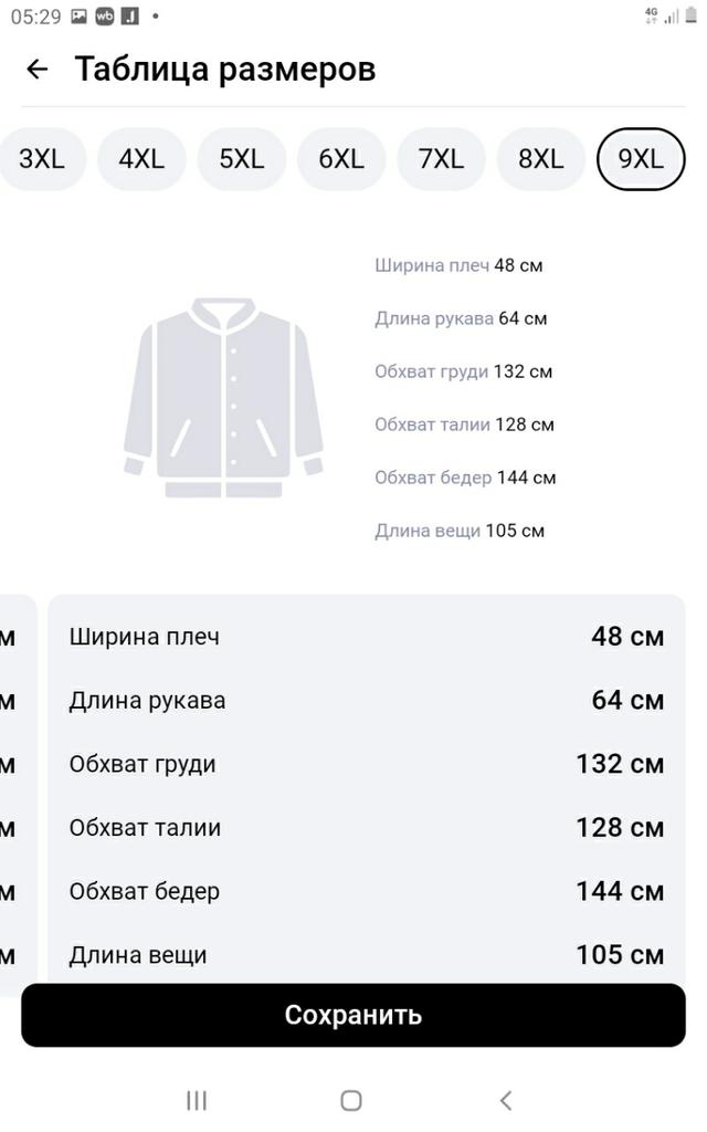 Size: 9XL, Bust: 132cm, Hips: 144cm, Shoulder: 48cm, Sleeve: 64cm, Waist: 128cm, Total length 105cm