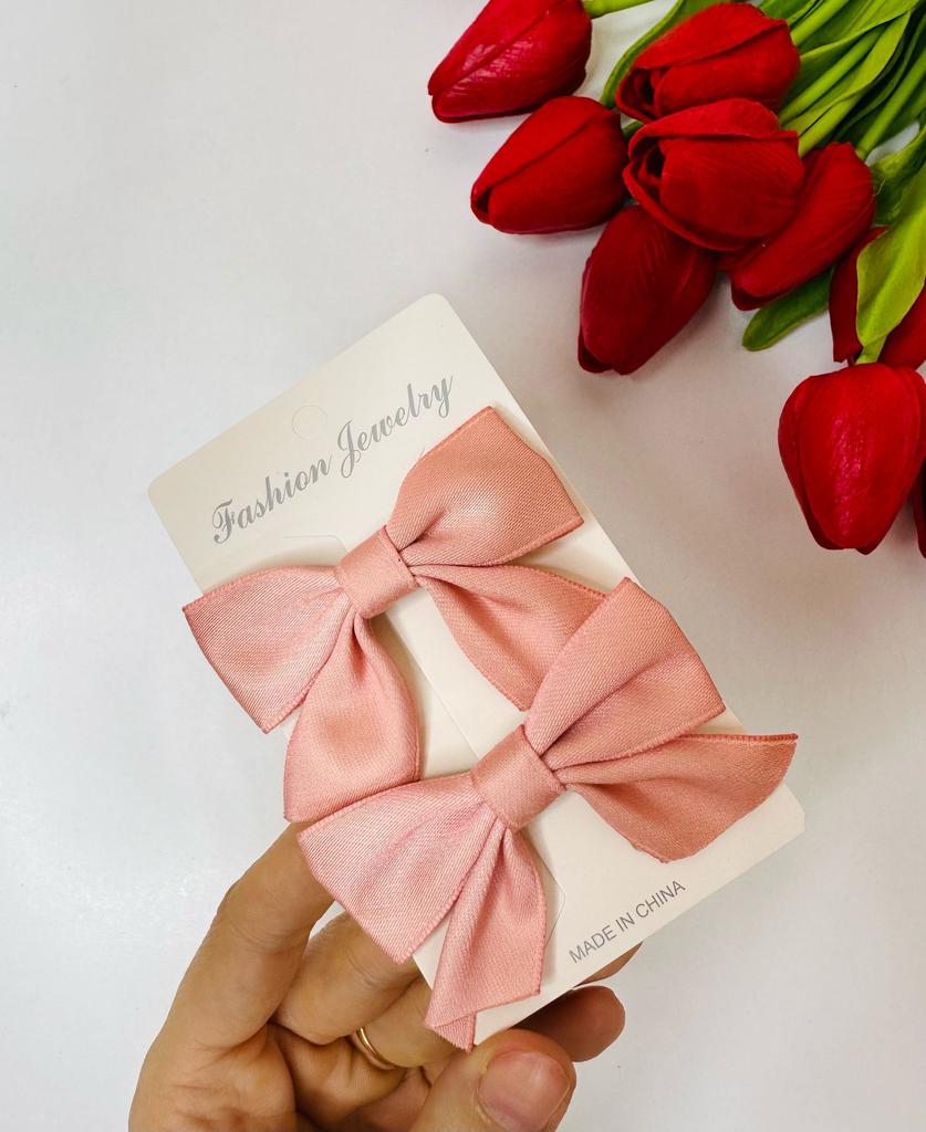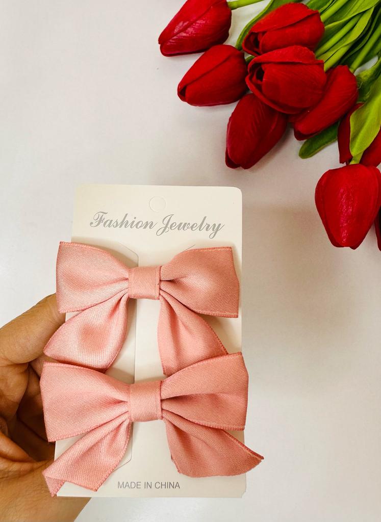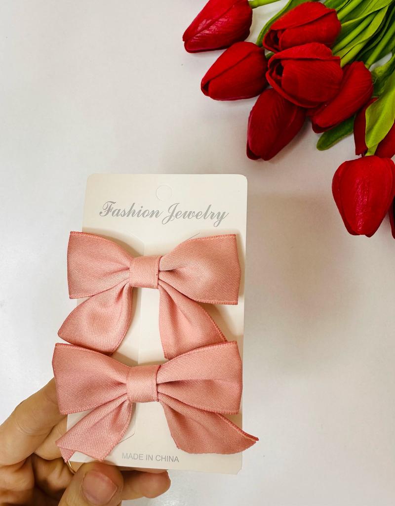 Cool bow hairpins, soft pink color.