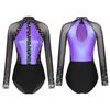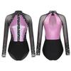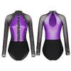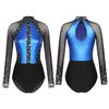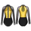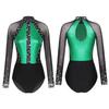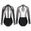 Women's Color Block Patchwork Gymnastic Leotard Bodysuit Tops Party Dance Costume Dancewear