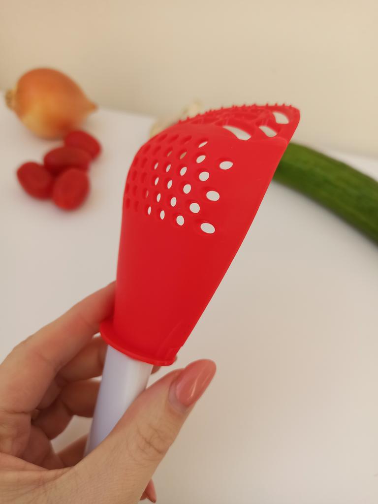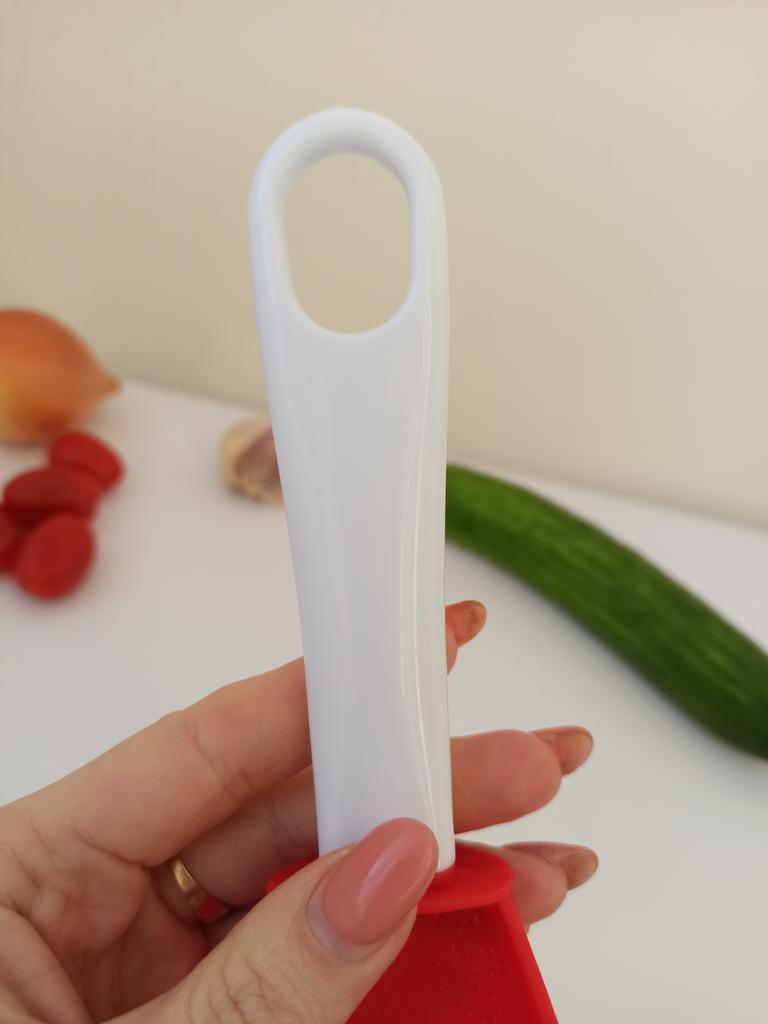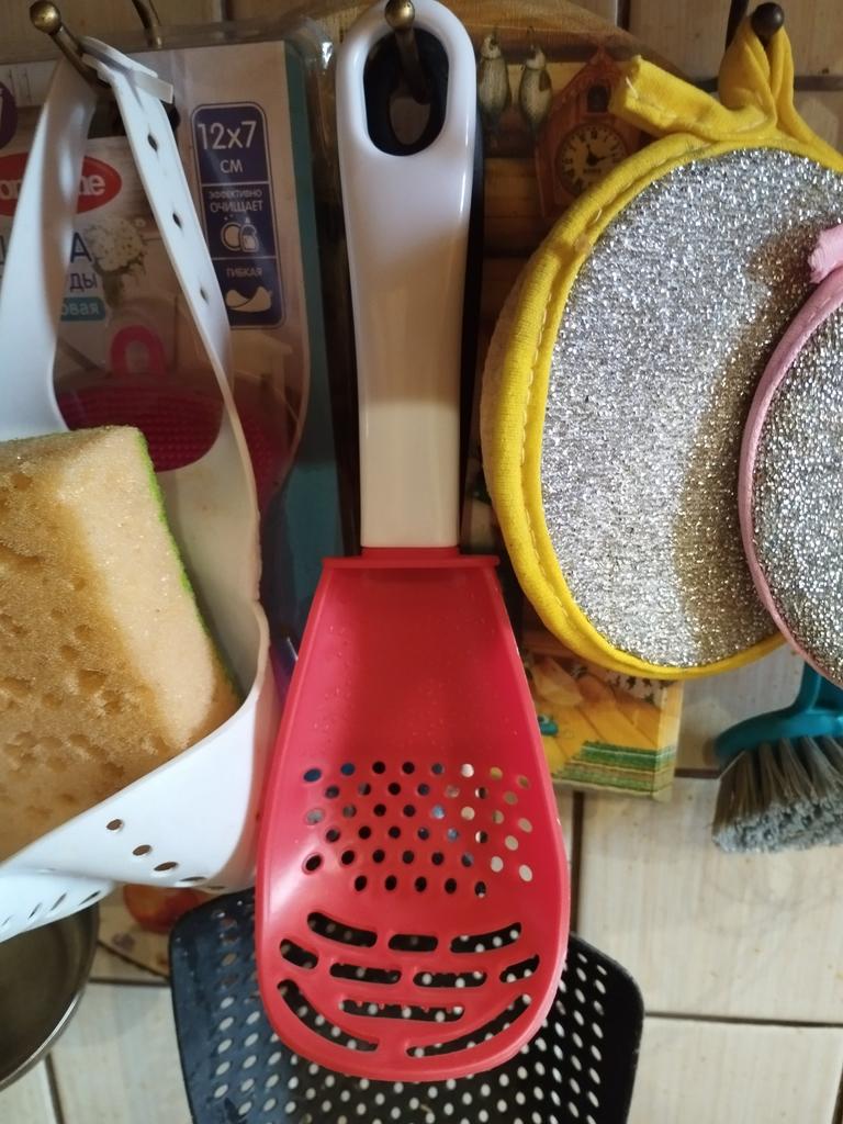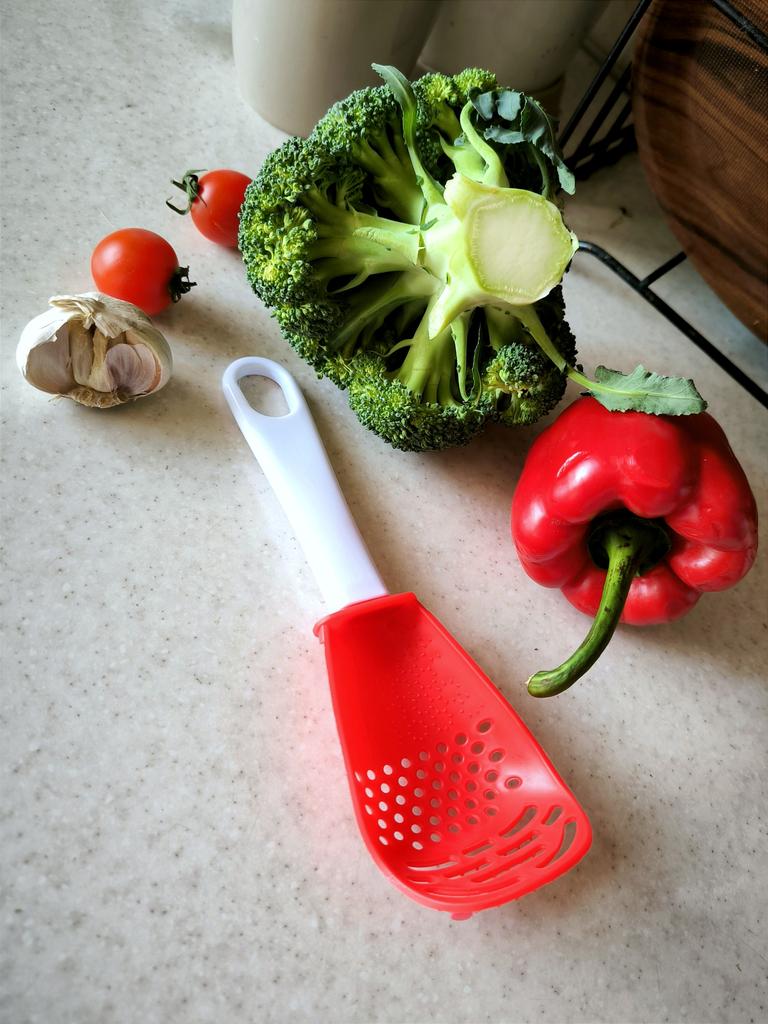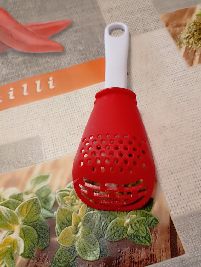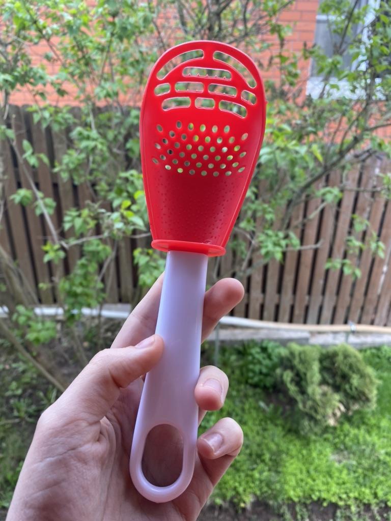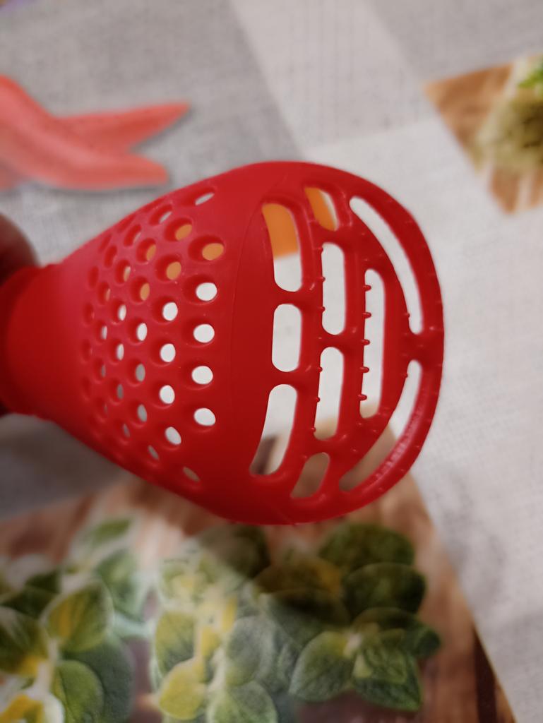 Multifunctional kitchen spoon π Delivery time: 34 days to Germany, a little longer than usual. Delivery was delayed but I received a discount as an apology. Scope of delivery β’οΈ: The scope of delivery includes a medium-sized KΓΌnen spoon. The product is available in 2 colors to choose from. I ordered it in red and am very happy with it. The product is ideal for food, fruit and vegetables, pasta π, berries etc. It is also suitable as a grater ππ. Total includes 3 functions, so it can replace 3 kitchen items. Great!ππππ Very comfortable and practical!!!! I didn't notice any disadvantages. The product is ideal when cooking various dishes. The size is great ππππ. The material is heat-resistant, anti-corrosion, non-toxic, has no unpleasant chemical smell. The design of the hook is very beautiful, it can be hung like I did. I can only recommend the product π, everything is great! Thanks Joom and the seller! 5 stars!βοΈβοΈβοΈβοΈ