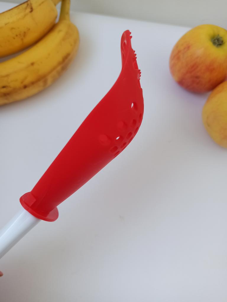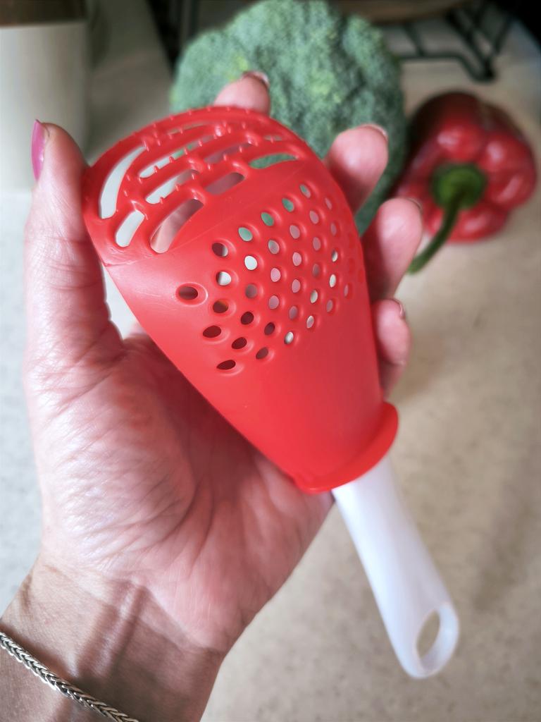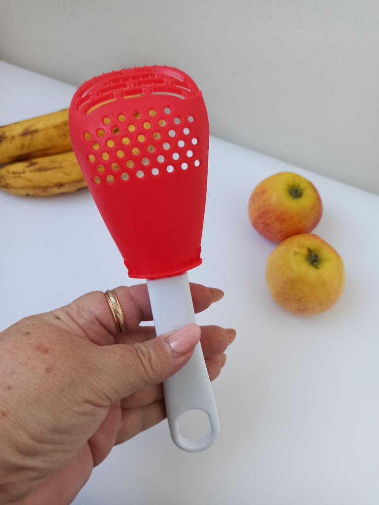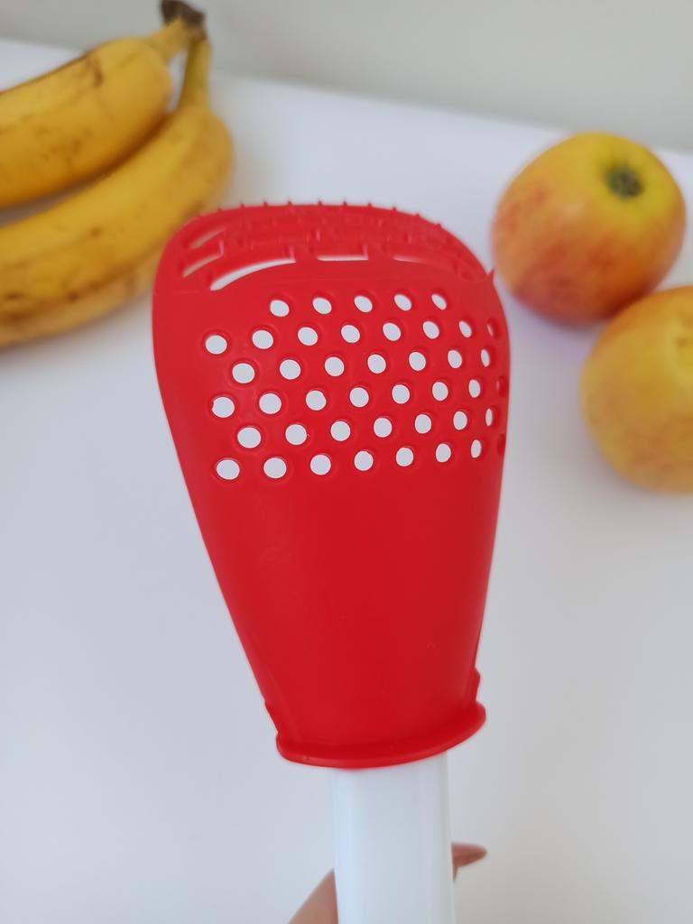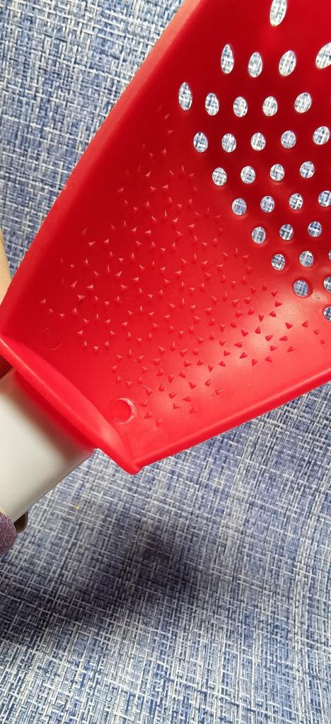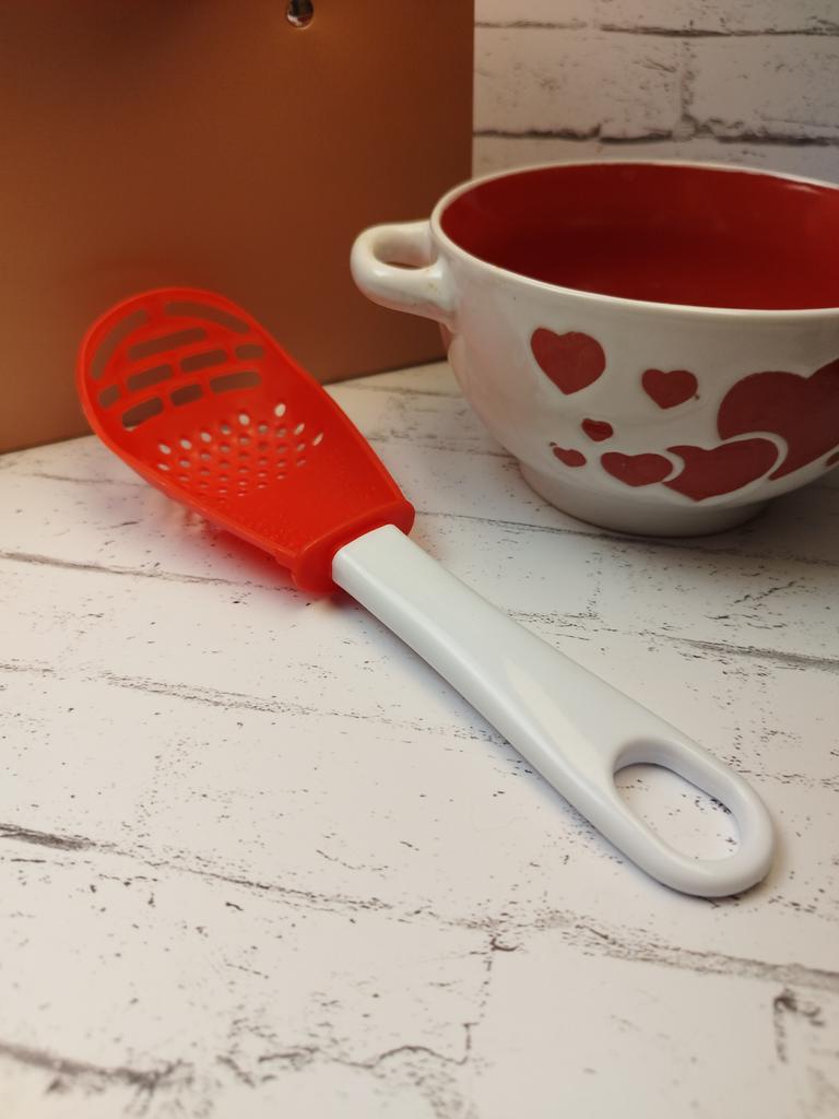 Multifunctional kitchen spoon π Delivery time: 34 days to Germany, a little longer than usual. Delivery was delayed but I received a discount as an apology. Scope of delivery β’οΈ: The scope of delivery includes a medium-sized KΓΌnen spoon. The product is available in 2 colors to choose from. I ordered it in red and am very happy with it. The product is ideal for food, fruit and vegetables, pasta π, berries etc. It is also suitable as a grater ππ. Total includes 3 functions, so it can replace 3 kitchen items. Great!ππππ Very comfortable and practical!!!! I didn't notice any disadvantages. The product is ideal when cooking various dishes. The size is great ππππ. The material is heat-resistant, anti-corrosion, non-toxic, has no unpleasant chemical smell. The design of the hook is very beautiful, it can be hung like I did. I can only recommend the product π, everything is great! Thanks Joom and the seller! 5 stars!βοΈβοΈβοΈβοΈ