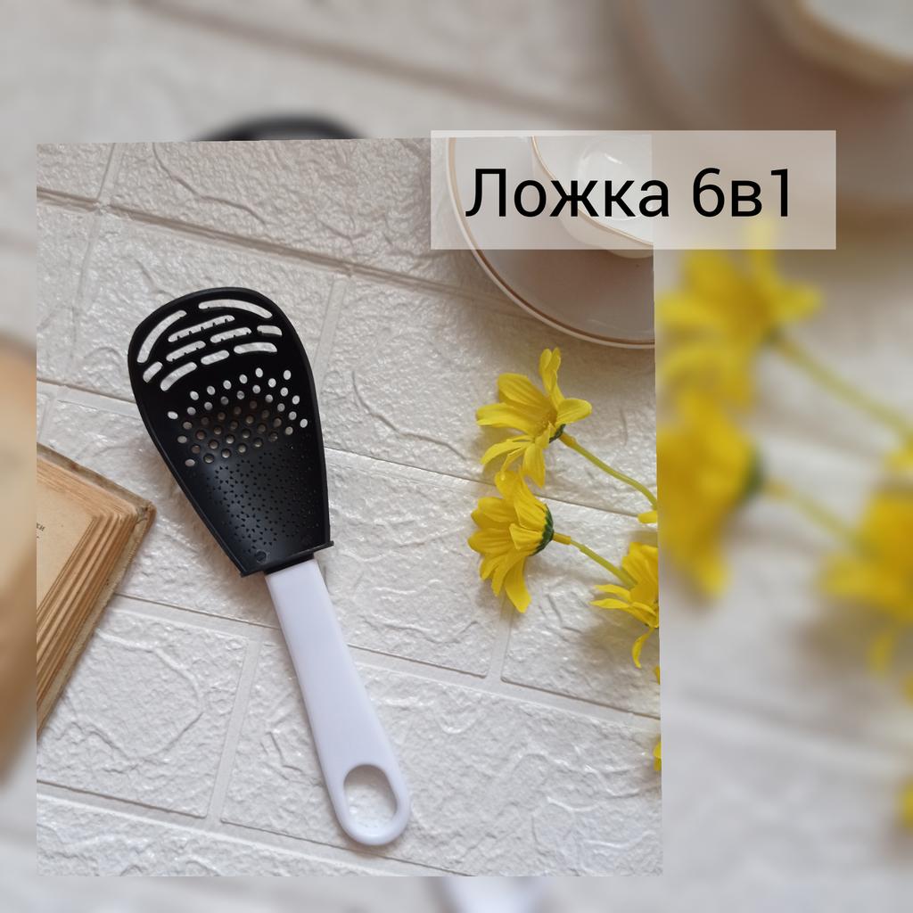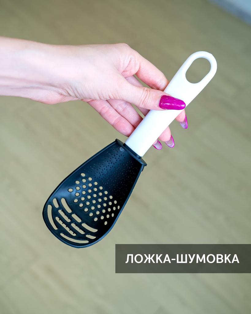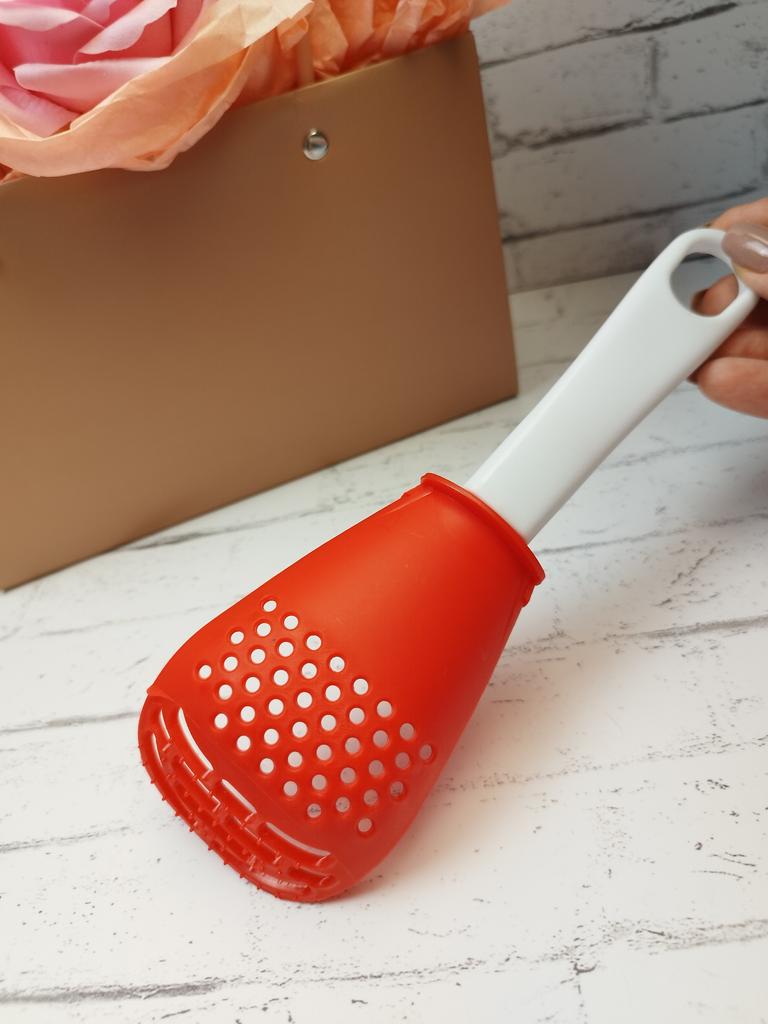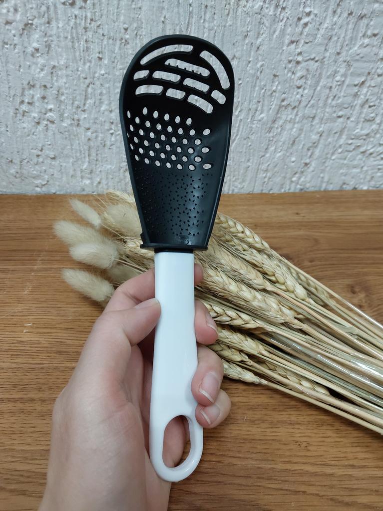 Multifunctional kitchen spoon The spoon is made of durable heat-resistant plastic. Dimensions: 23*7.5cm. This spoon can be used for: β removing dumplings, dumplings, pasta, vegetables or meat from hot water. β removing foam from broth during cooking β use as a masher - for making purees, vegetables, fruits (in small quantities). β also, thanks to the hard spikes on the bottom outer part of the slotted spoon, you can quickly chop garlic, ginger, etc.. Itβs not for nothing that this spoon is multifunctional and can easily replace several items in the kitchen.. Satisfied with the order. I recommend!