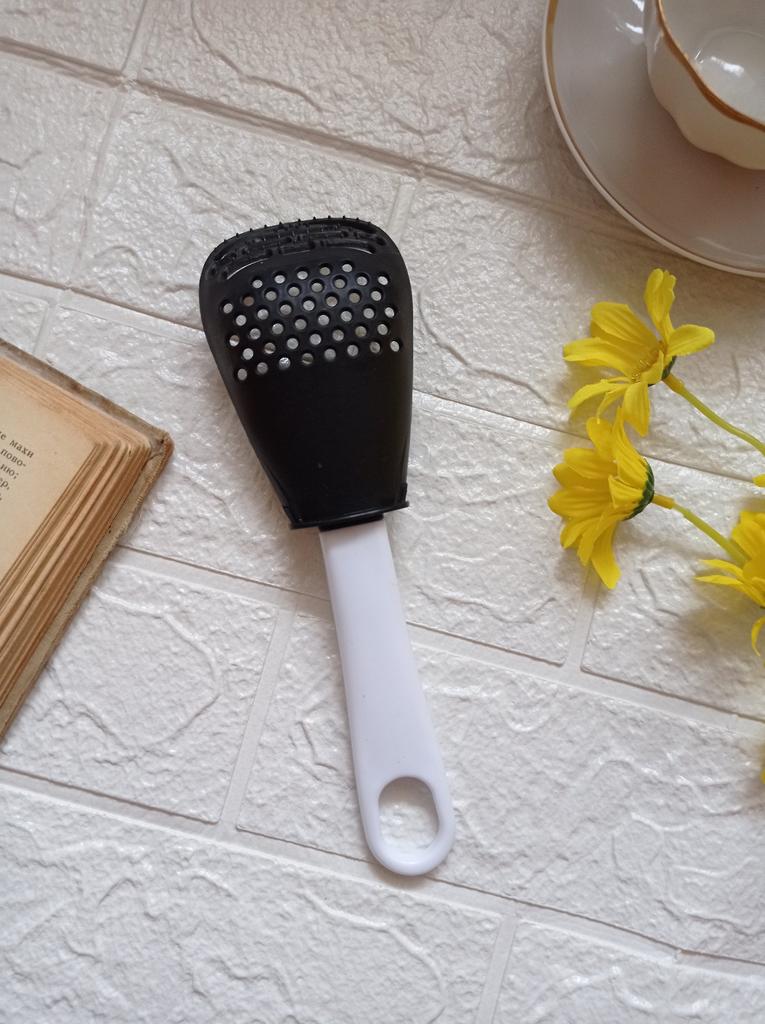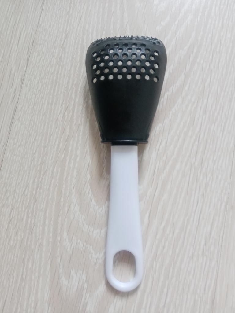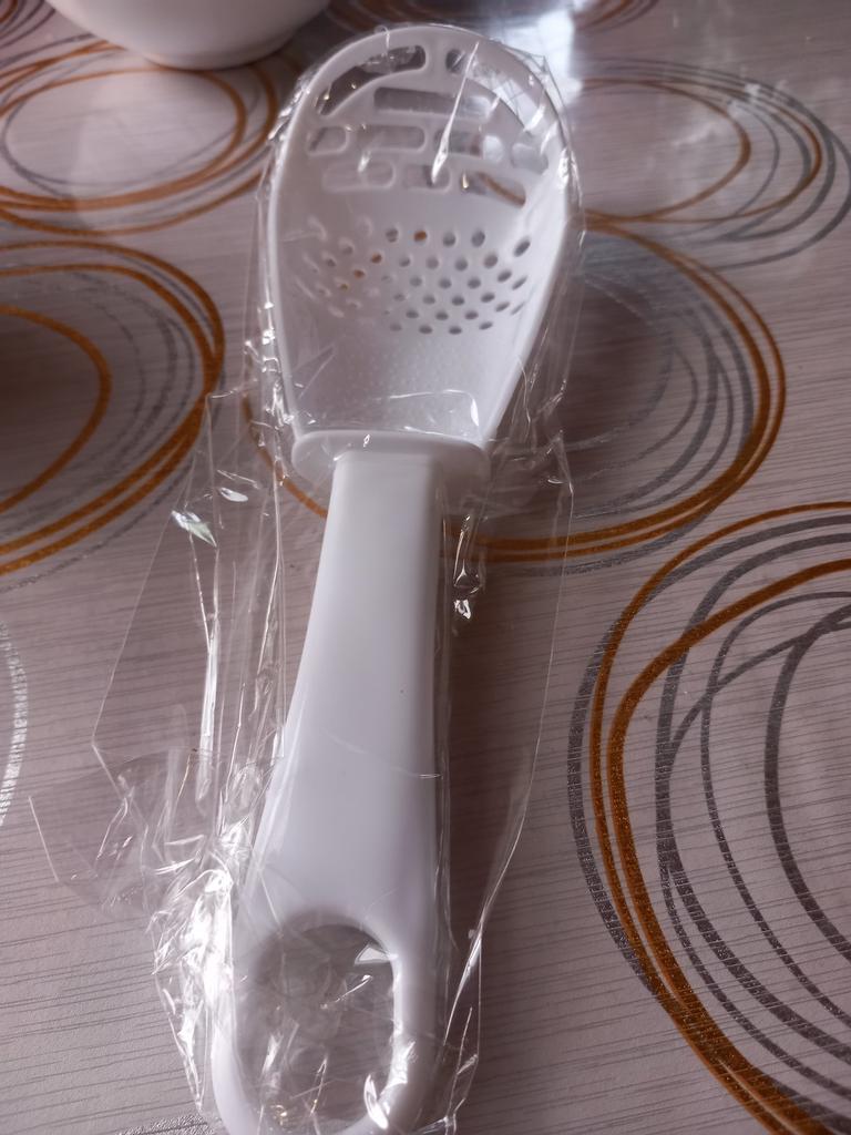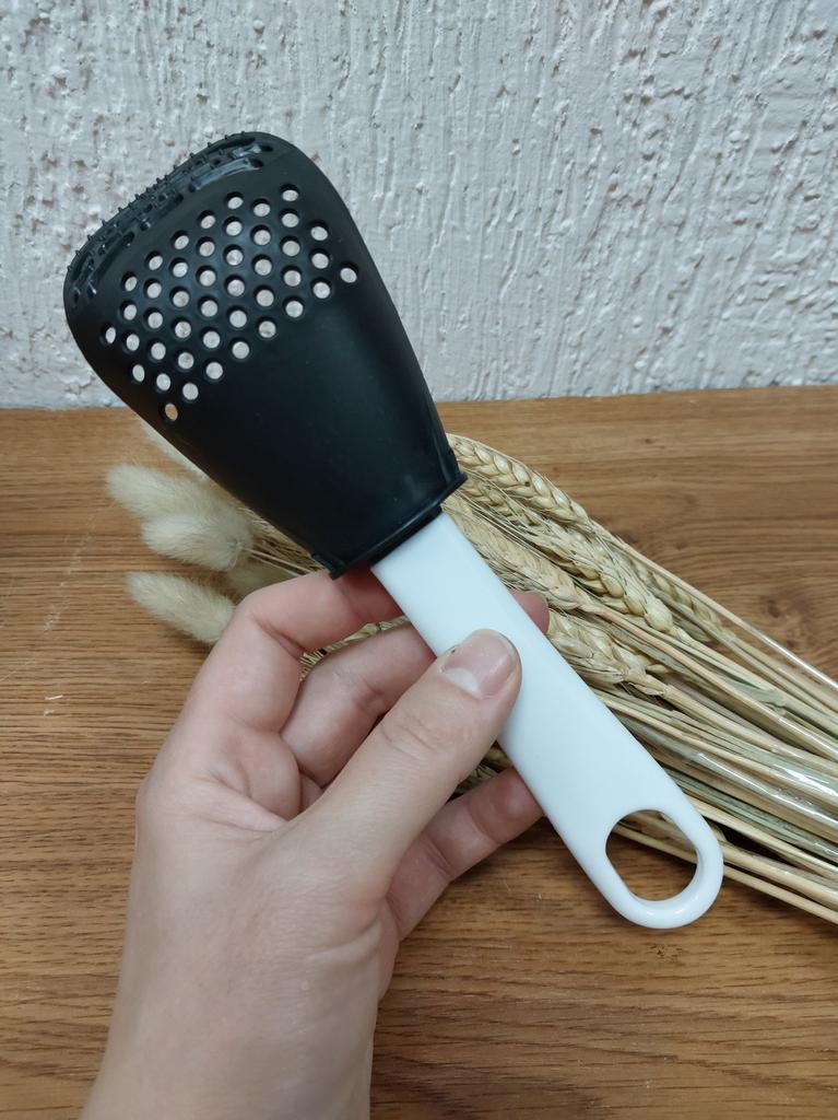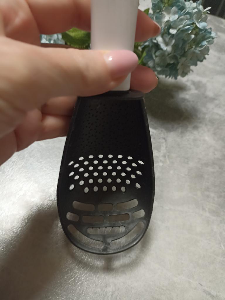 Universal kitchen spoon. This multifunctional kitchen spoon is suitable for mixing, grinding, removing foam, extracting from hot water, making purees, chopping, and will become an indispensable assistant in the kitchen. This spoon can be used to remove dumplings, dumplings, pasta, vegetables or meat from hot water. Use to remove foam from broth during cooking. Also use as a masher - for preparing vegetable and fruit purees. Hard spikes on the bottom outer part of the slotted spoon will help you quickly chop garlic and ginger. The cutlery is made of high-quality plastic and does not absorb odors and tastes. Dimensions: 23x7.5 cm. The spoon is comfortable to use. I recommend.