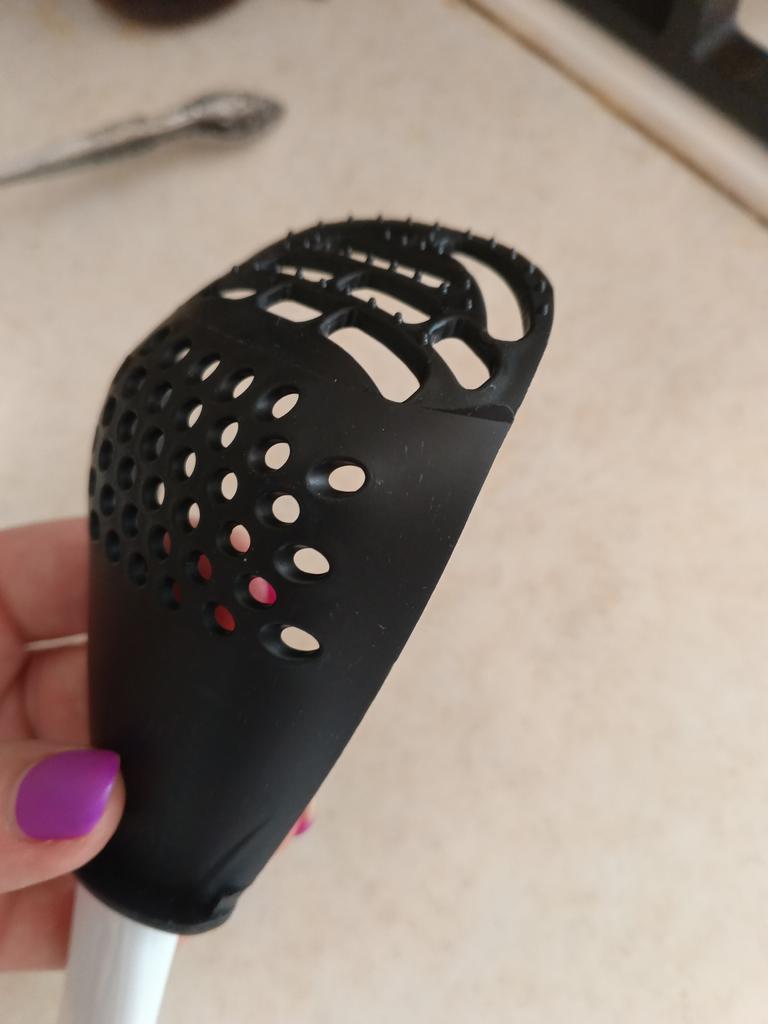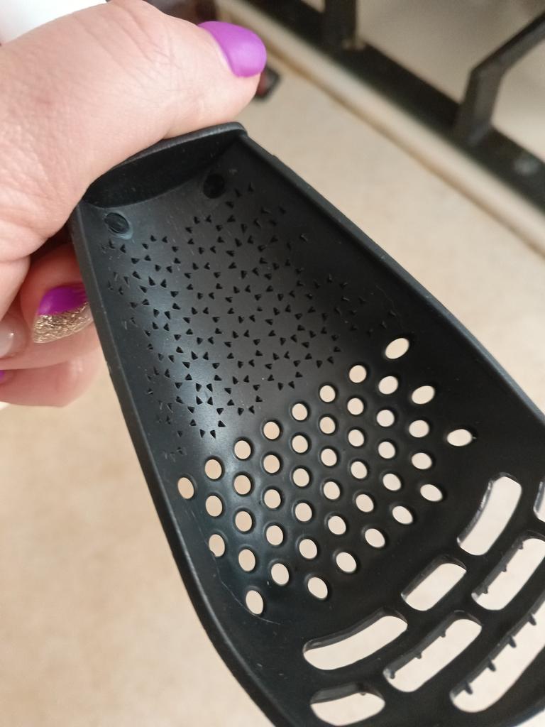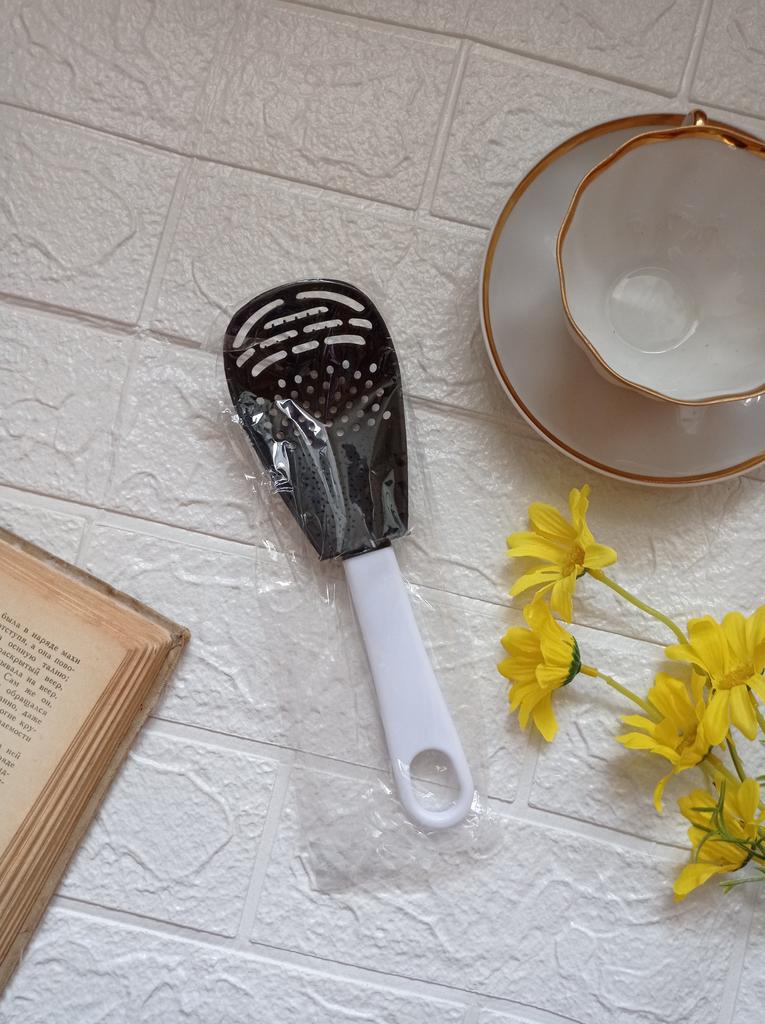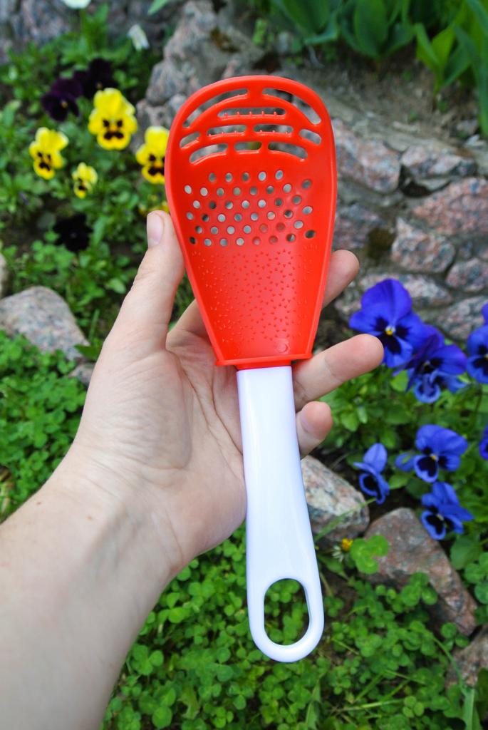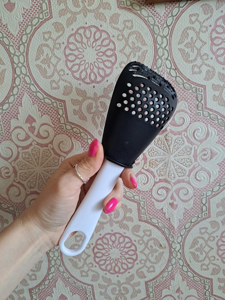 Universal kitchen spoon. This multifunctional kitchen spoon is suitable for mixing, grinding, removing foam, extracting from hot water, making purees, chopping, and will become an indispensable assistant in the kitchen. This spoon can be used to remove dumplings, dumplings, pasta, vegetables or meat from hot water. Use to remove foam from broth during cooking. Also use as a masher - for preparing vegetable and fruit purees. Hard spikes on the bottom outer part of the slotted spoon will help you quickly chop garlic and ginger. The cutlery is made of high-quality plastic and does not absorb odors and tastes. Dimensions: 23x7.5 cm. The spoon is comfortable to use. I recommend.