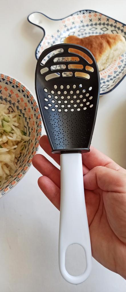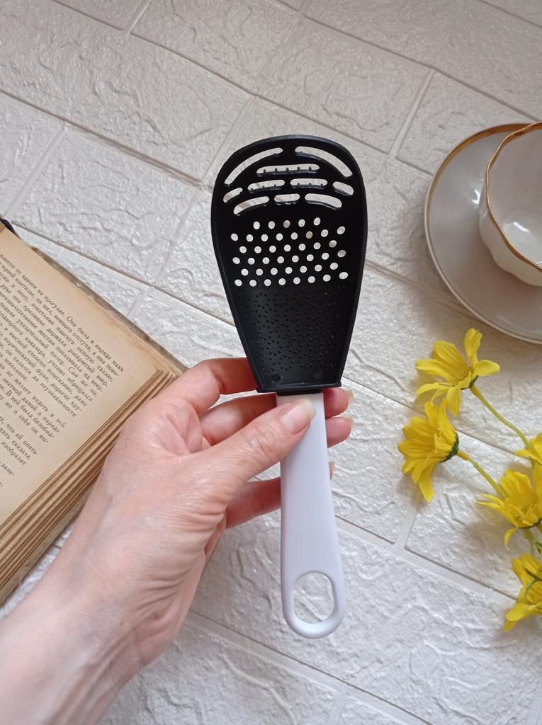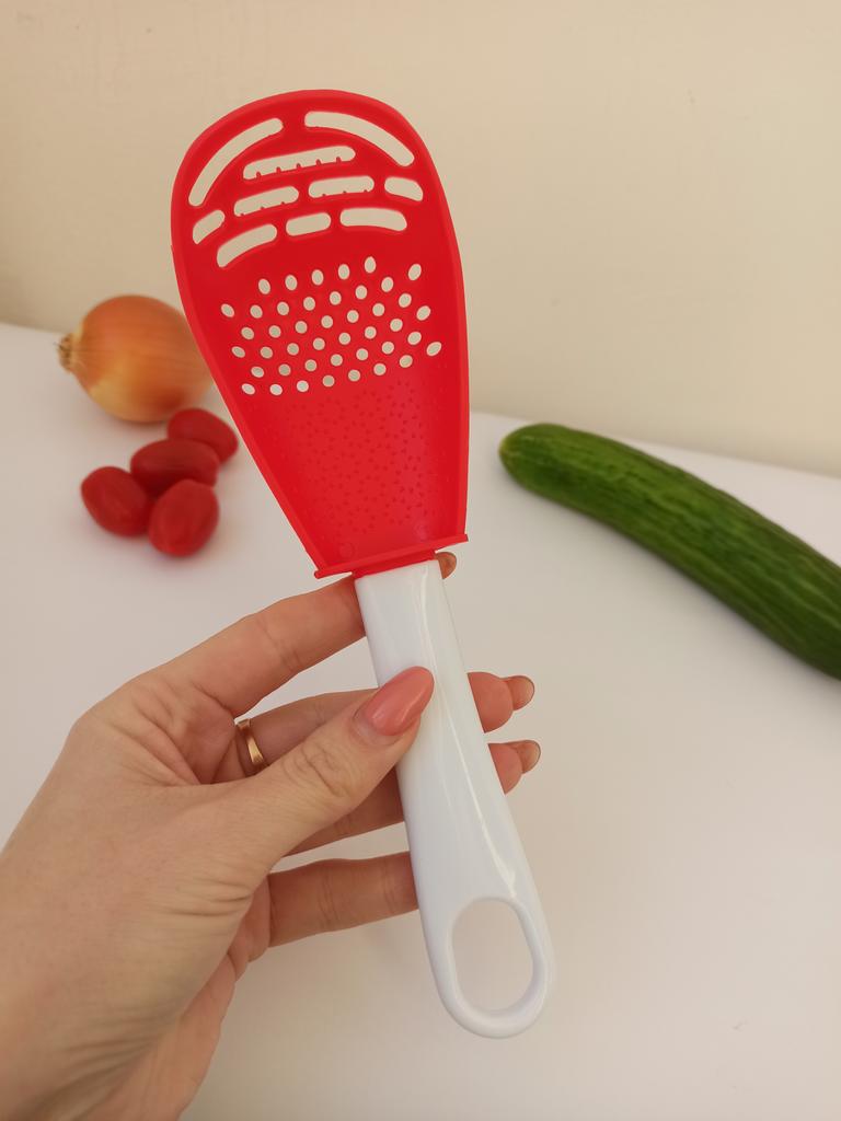 Multifunctional kitchen spoon A very cool helper in any kitchenπ The spoon can be used as a slotted spoon, a grater, a potato masher, or simply for stirring during cookingπ§βπ³ It is completely made of plastic