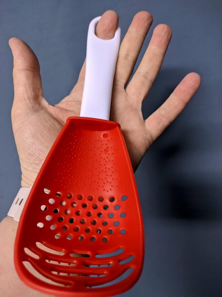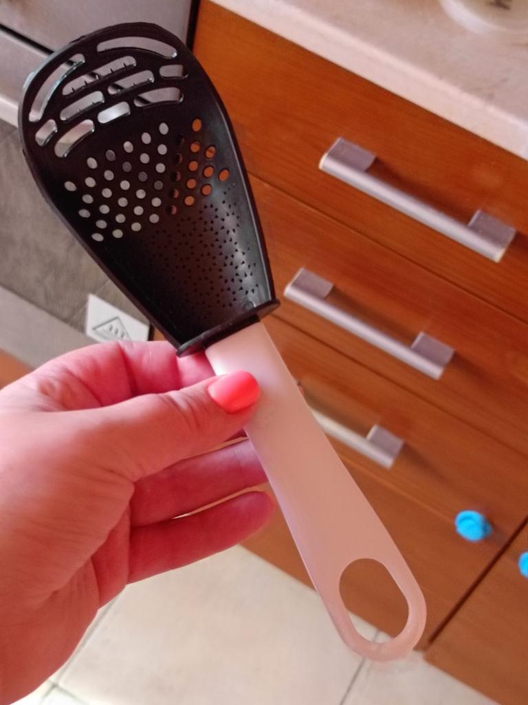 A multifunctional palette, it serves as a strainer, to make purees, chop garlic, etc. It is a perfect accessory that cannot be missing in our kitchens. I recommend it, buy it you won't regret it ππ π π. π¦Package Content: A multifunctional palette. πPros: Delivery to Spain in 22 days. βοΈ Very well protected for the trip. pretty good quality. very easy to use. Its shovel shape is perfect for working directly in a pot or casserole.. High temperature resistant. It is perfect for straining foods such as rice, spaghetti, and all kinds of pasta.. Serves as a strainer, to make purees, chop garlic. Accessory that cannot be missing in our kitchens. The seller has several colors, red and black. πCons: Nothing important to highlight.