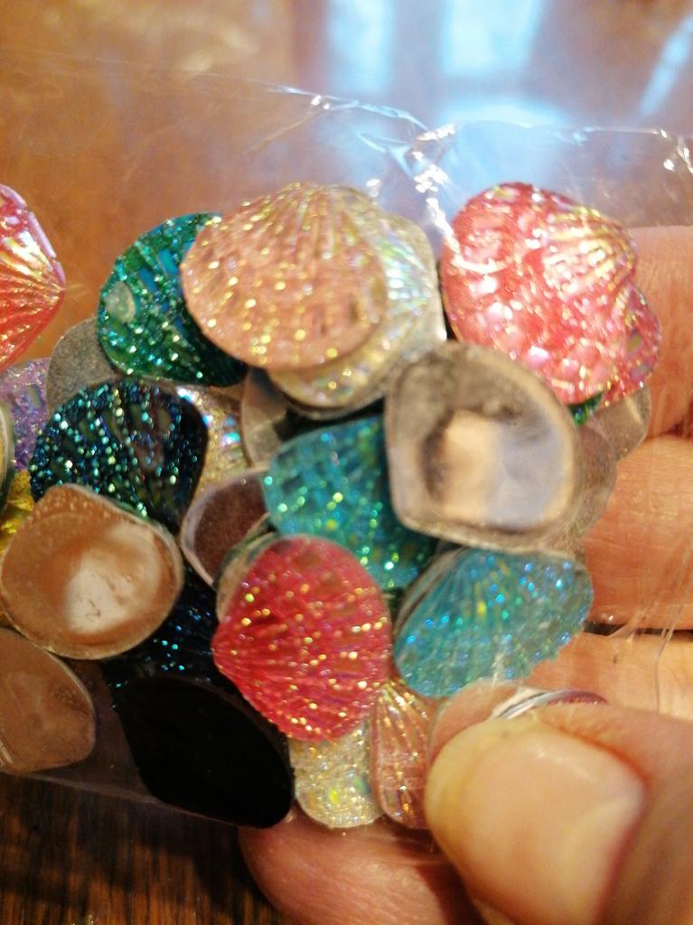40pcs AB Resin Glitter Shell Flatback Rhinestone Scrapbook Wedding Applique Accessories Decor Crafts Supplies