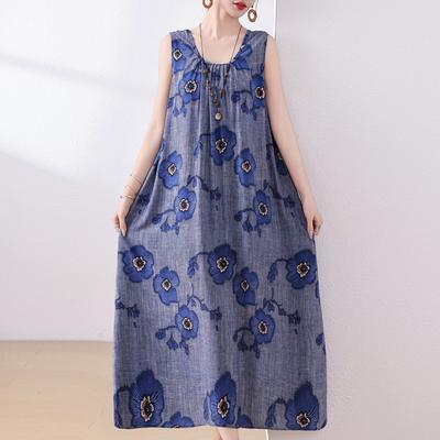 Sleeveless Plus Size Cotton Vintage Floral New In Dresses for Women Casual Loose Long Summer Dress