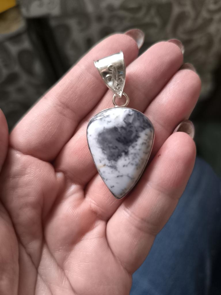 Natural Dendrite Opal Gemstone 925 Sterling Silver Gift Pendant 2.56" F0S95