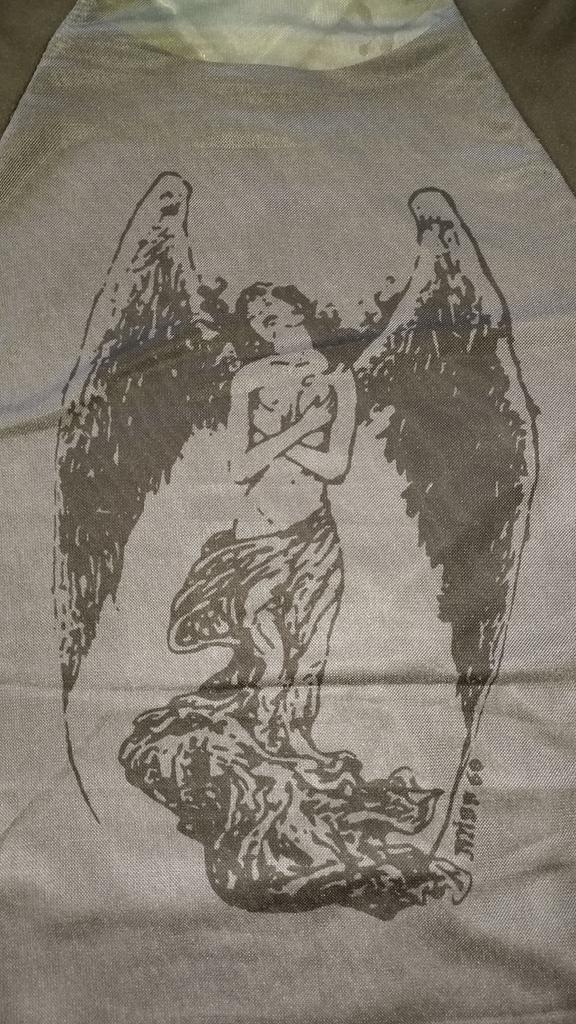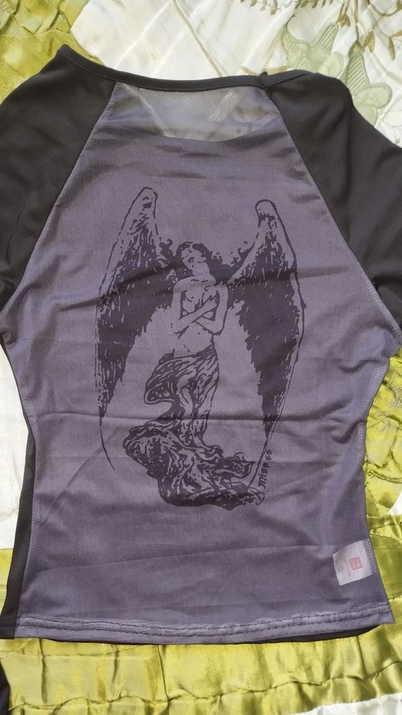 Black Retro Angel Print T-shirt for Women 2024 Spring Fashion Slim Fit Tee Shirt Y2k E-Girl Long Sleeve Bottoming Tops Mujer New