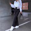 Women Two Piece Set Autumn Office Simple Solid Lapel Long Lantern Sleeve Single Breasted Button Shirt Top Loose Pants Set 2024 New