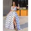 Women's Printed Waistband, Mid Waist Temperament, Commuting Long Dress, Sexy Slit Dress with Belt