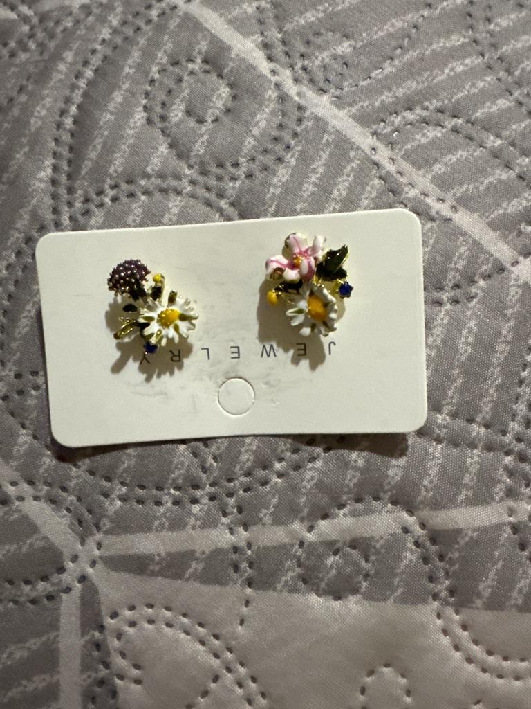 Fashion Enamel Glaze Asymmetric Stud Earrings For Women Popular Elegant White Chrysanthemum Earrings Jewelry