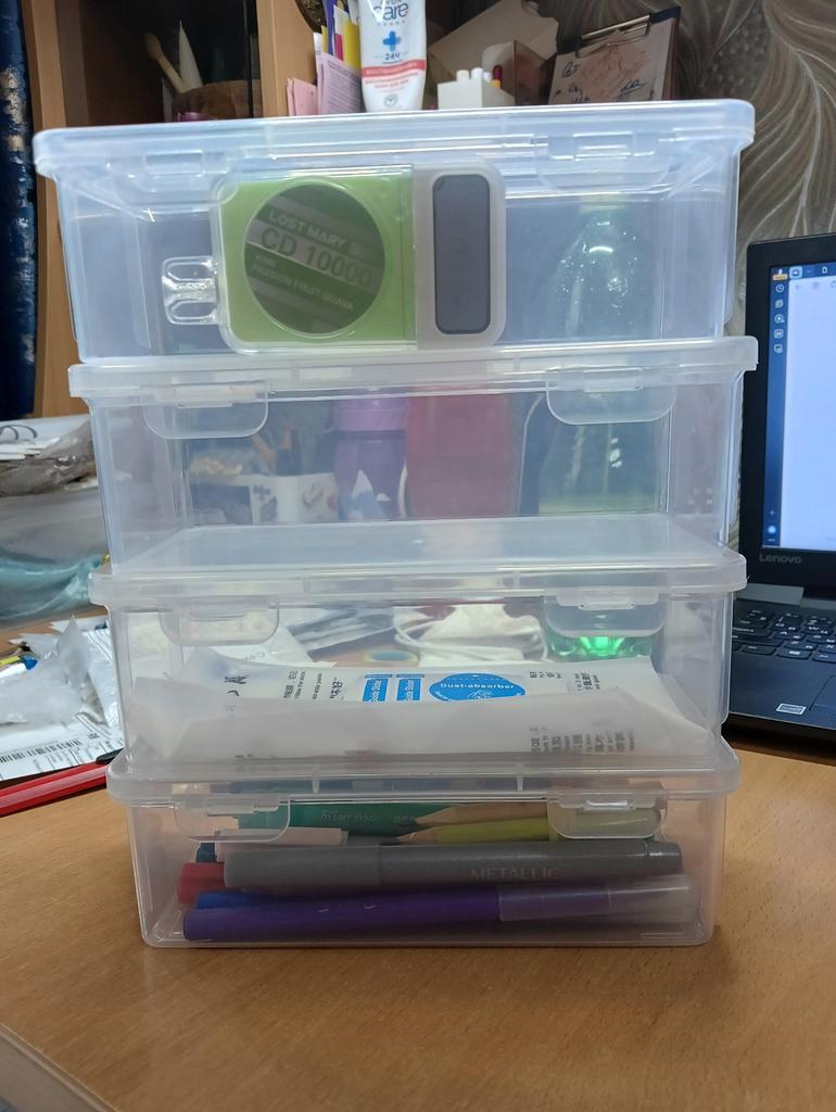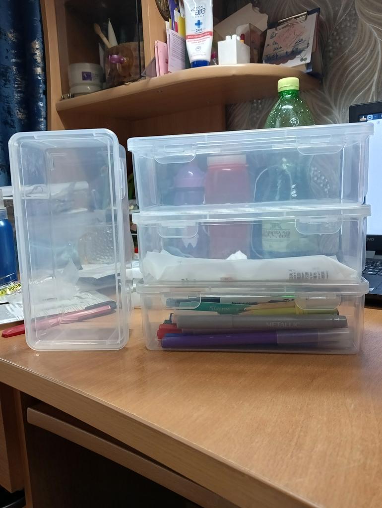 I've already ordered before, everything was fine, this time two containers cracked. The containers themselves are convenient for stationery or small games, toys
