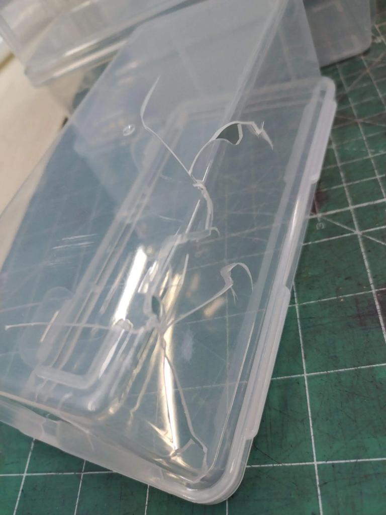 One of the containers is cracked, apparently damaged during transportation.