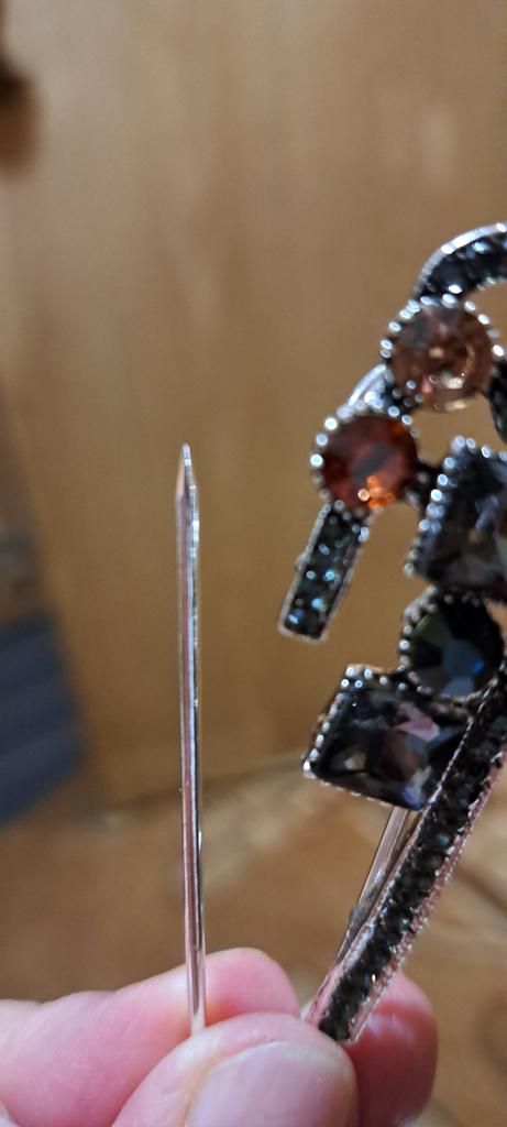 Everything corresponds to the description., a bit heavy., doesn't look good on thin knitted fabrics. I took it for a cardigan