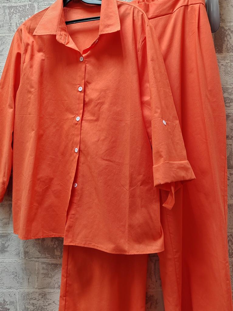 Women Linen Casual Shirt 2 Pieces Set Fashion Lapel Long Sleeve Button Blouse And Trousers Outfits Loose Wide Leg Pants Suits