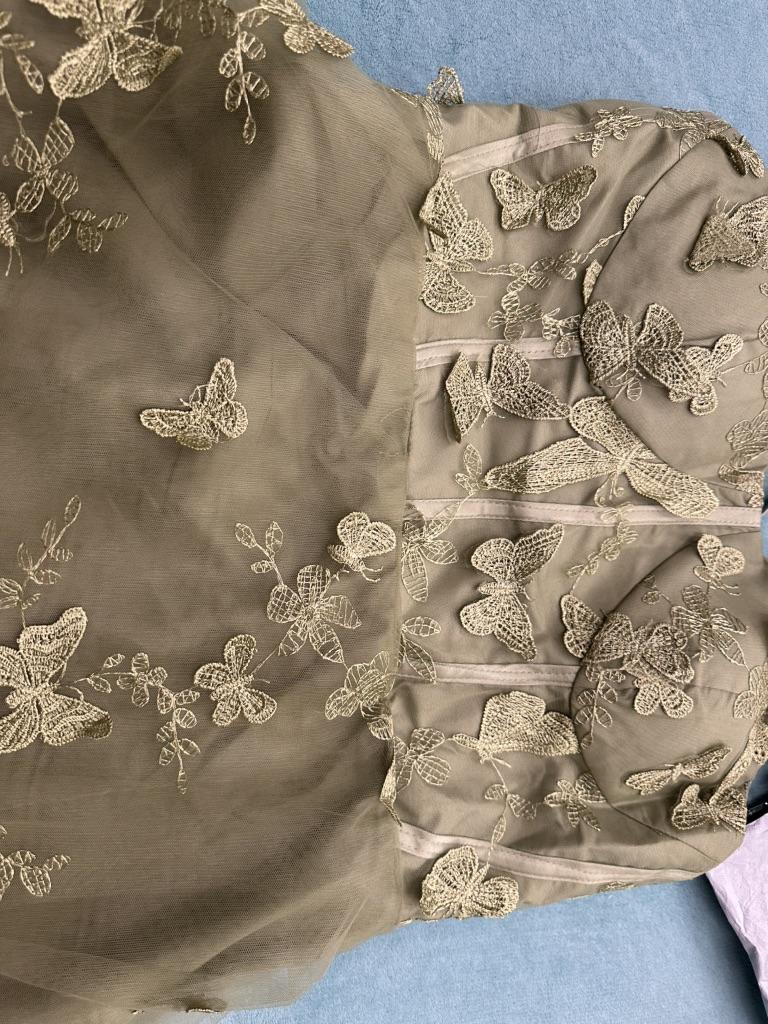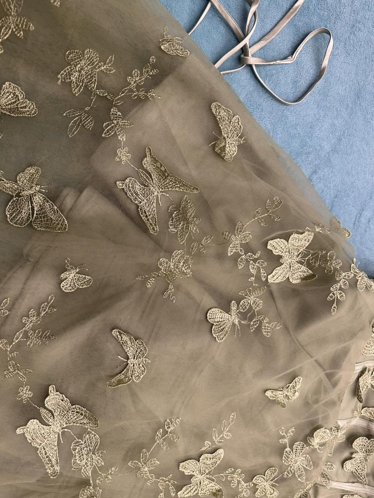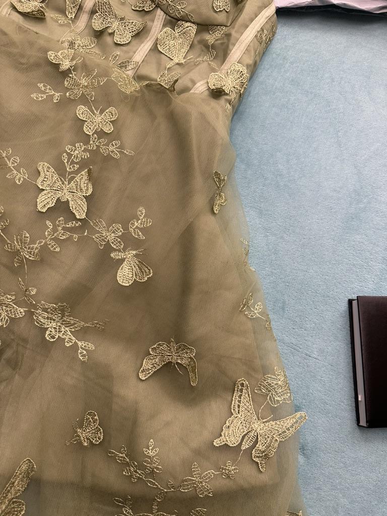 - The front side of the tulle skirt is not gathered as shown in the photo in the e-shop, which causes the lower fabric part of the skirt to be wrinkled. The lower fabric part of the skirt is long in the e-shop photo, the delivered dress has a short skirt. - the slit of the tulle skirt is badly trimmed - the string for pulling the back part of the dress is not sewn This dress is not worth €92. They show signs of low product quality. The work is sloppy.