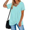 Women's casual fashion sexy solid color pullover comfortable and cool cross V-neck short-sleeved loose T-shirt