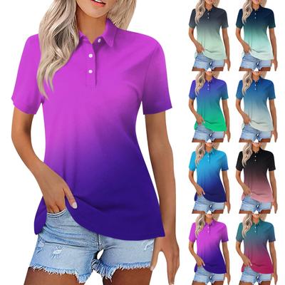Women's Fashion Casual Lapel Short Sleeve Gradient Print Shirt Women's Button Up Tops