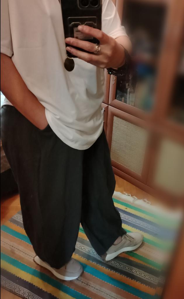 They fit perfectly on the hips, the waist turned out to be a bit big, but the drawstring solved the problem. For a height of 170 cm, the length is just right. The fabric is light - it doesn't make you sweat in the heat.