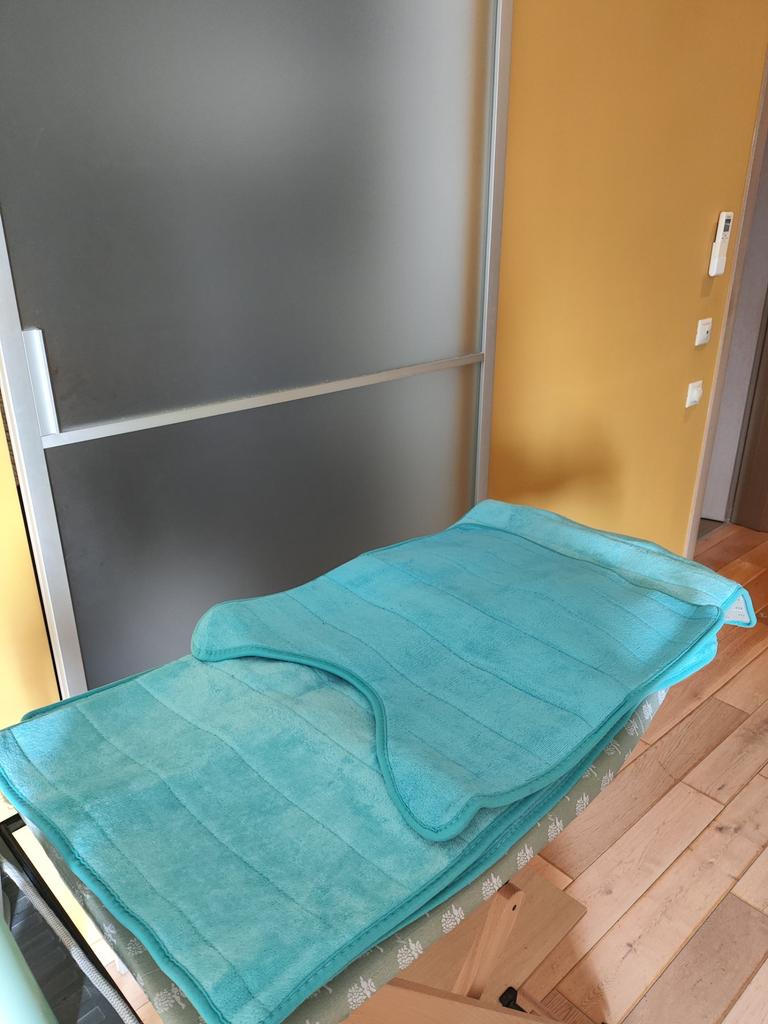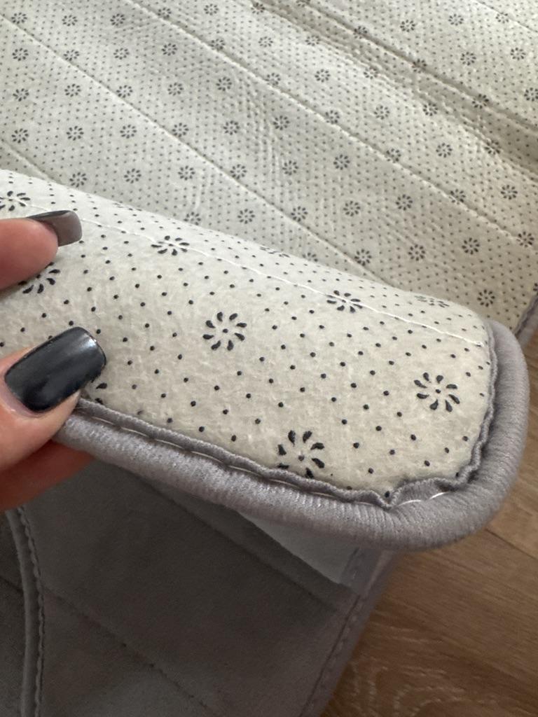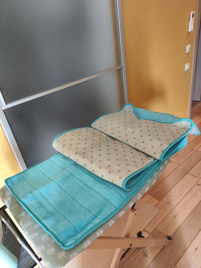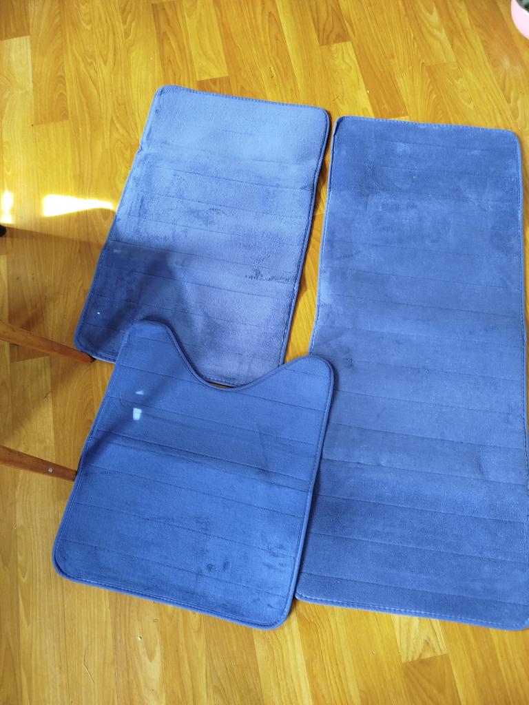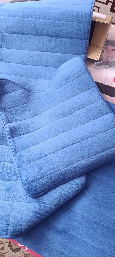 Cool soft mats, absorb moisture well. Two mats have light blue upholstery, and the third one has dark blue. Thank you, the mats themselves are in the same color ๐คจ