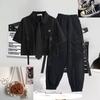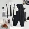 Autumn Streetwear Pants High-Waist Straight Ribbon Cargo Pants Student Loose Short-Sleeved Shirt with Tie Two-piece Set