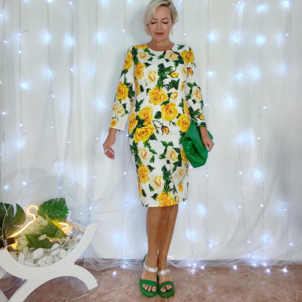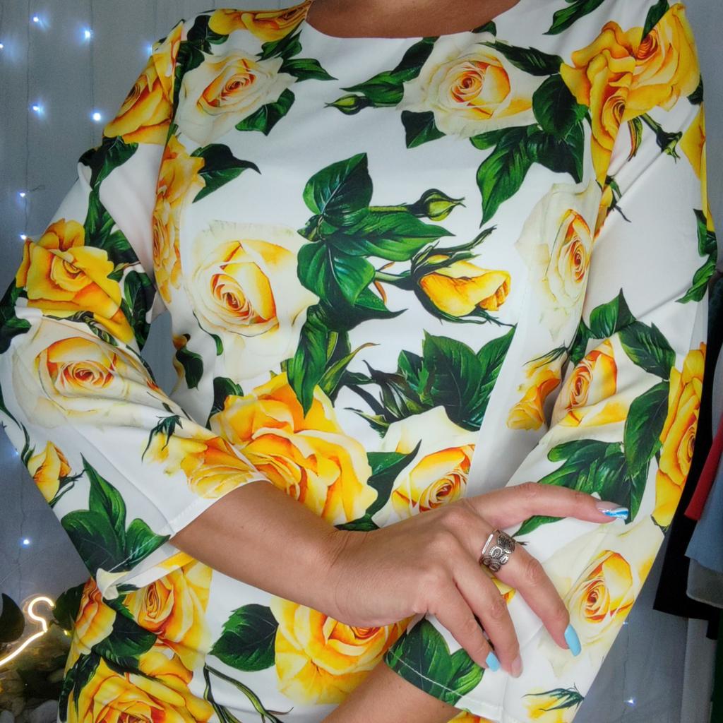 Summer Runway Fashion Rose Flower Print Bodycon Dress Women Holiday O-Neck 3/4 Sleeve Elegant Split Midi Party Dresses