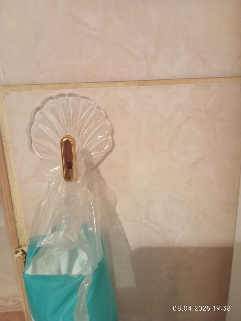 Beautiful acrylic transparent hook with adhesive element! Looks very impressive on the wall in the bathroom! Recommend for purchase.