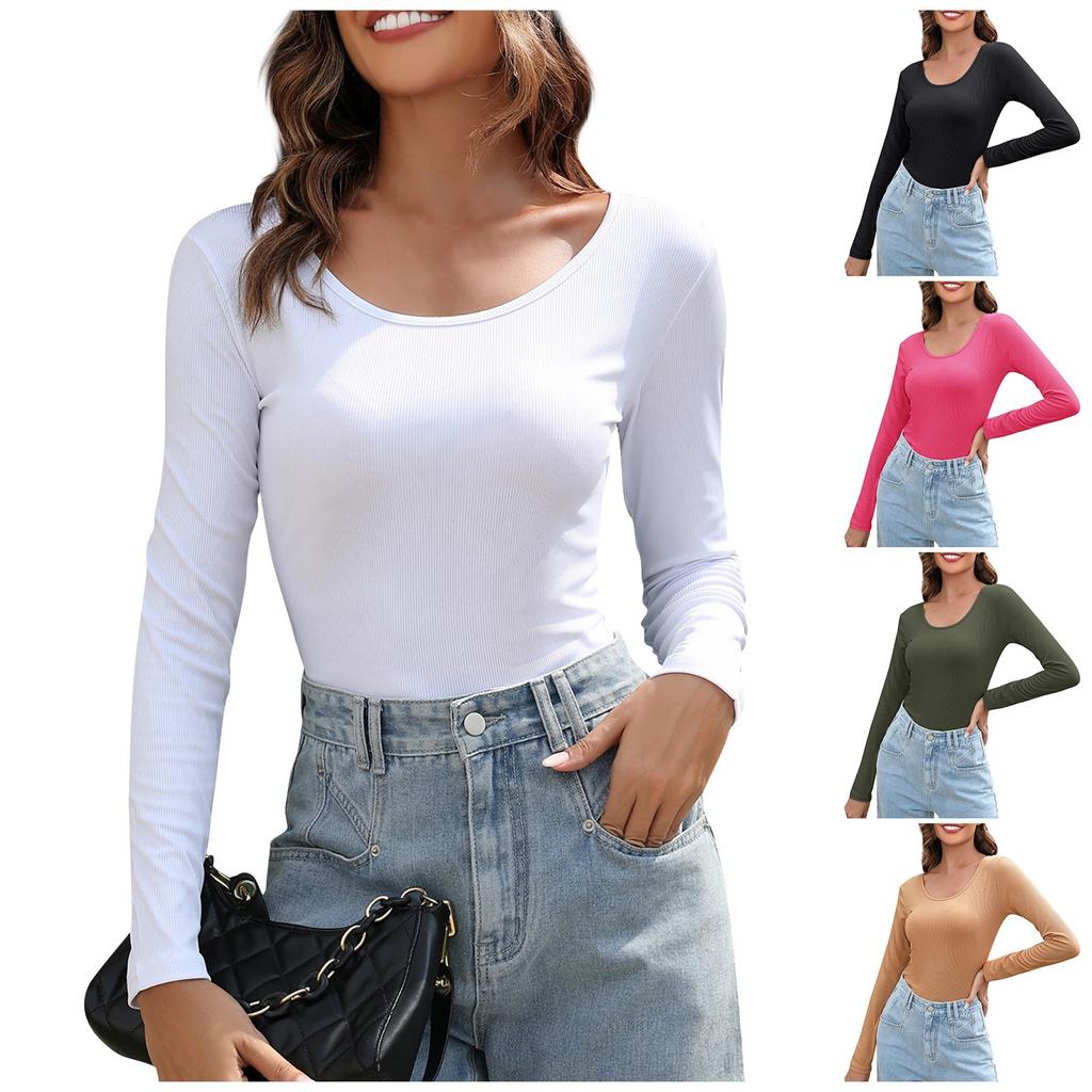 Women's Fashion Casual Solid Color Slim Long Sleeve Round Neck Top