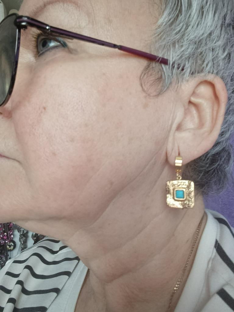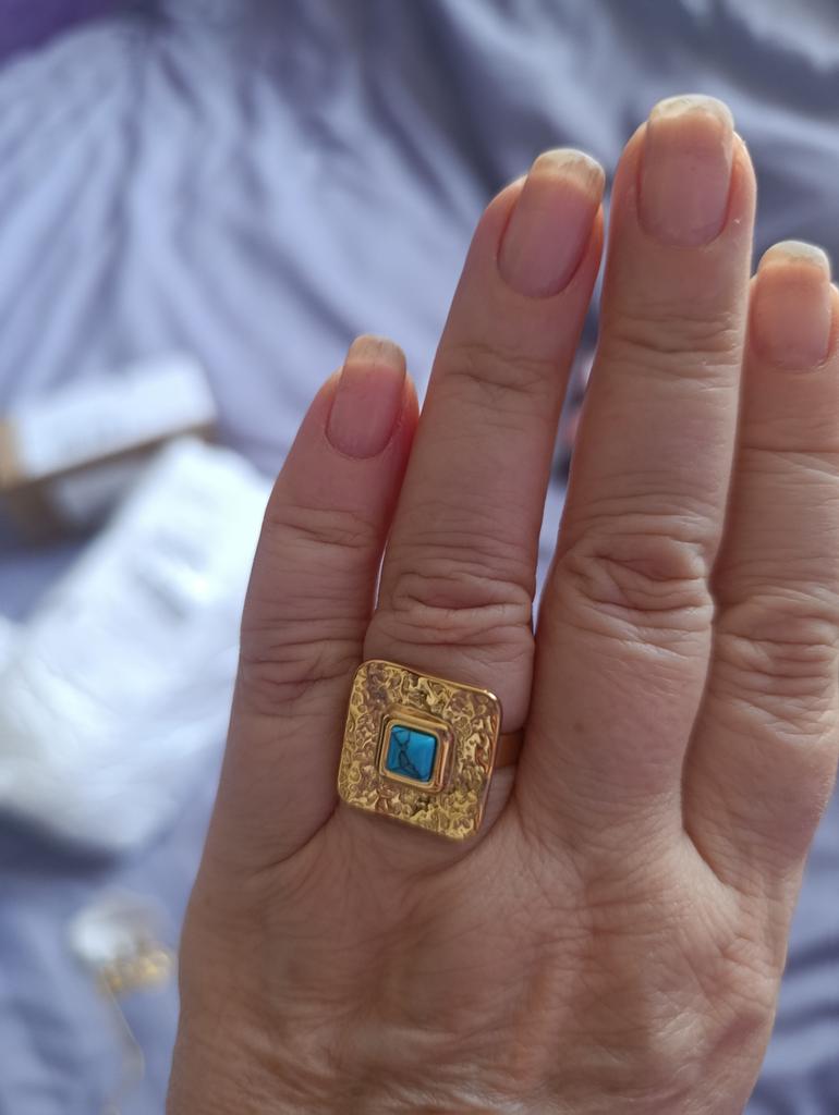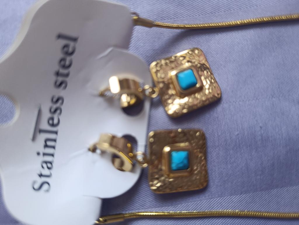 Received the jewelry set, was really looking forward to it. The set is not large, you could say elegant. The gold-colored plating is discounted, matte. The ring has an adjustable size, the earring hooks are decent. You can even wear it all at once, it doesn't look gaudy.