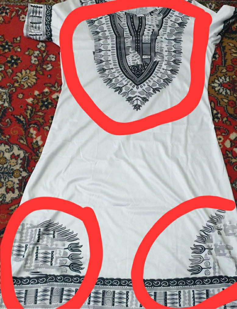 Beautiful dress. Runs true to size. Clear pattern.