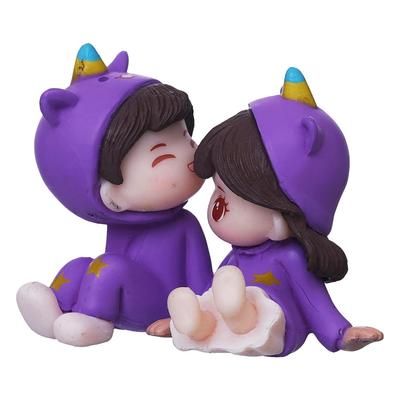 Purple Miniature Cute Couple Statue Girl On Boy's Shoulder Decorative Showpiece - Valentine Gift