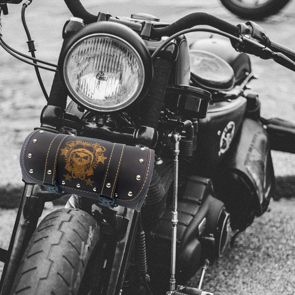 Motorcycle Fork Bag Leather Cruiser Tool Roll Barrel Bag Fork Barrel Shape Handlebar Black Saddlebags Storage