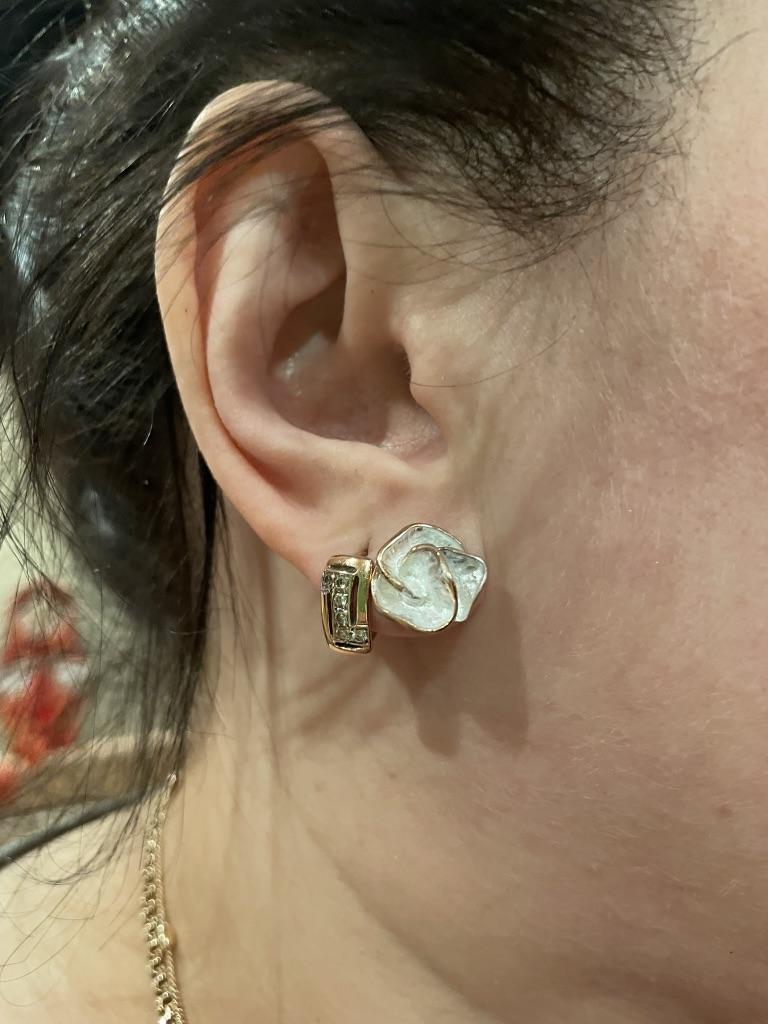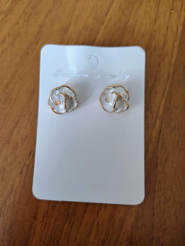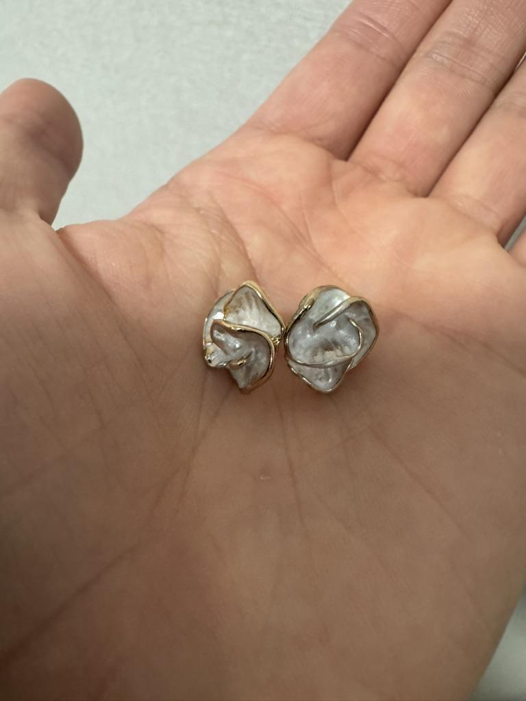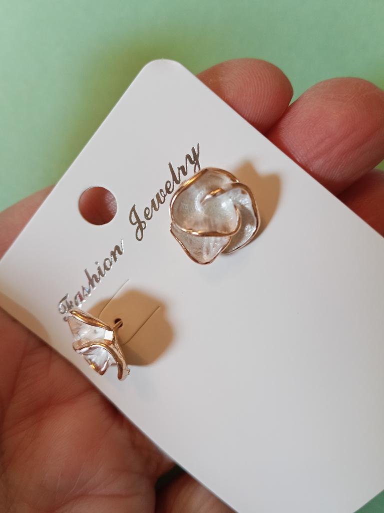 One earring is white, the other is more beige, the colors are different