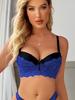 Contrast Lace Push Up Bra, Comfy & Elegant Colorblock Bow Tie Bra, Women's Lingerie & Underwear