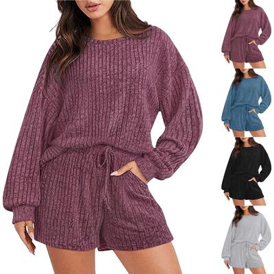 Women's Home Long Sleeve Top And Shorts Two-Piece Set Clothing Fashion Casual Comfort Solid Color Pajamas With Pockets Set