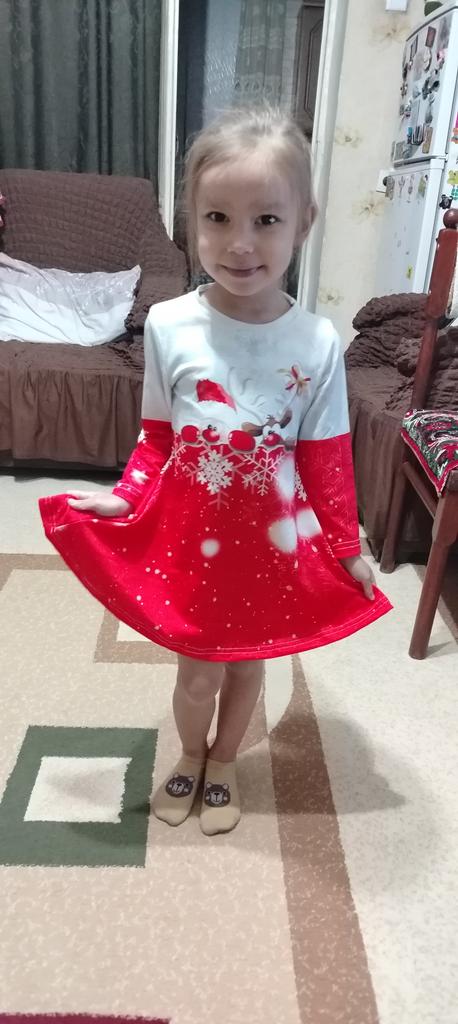 Girl Casual 3D Christmas Reindeer Cat Print Round Neck Long Sleeve Dress Kid Princess Dress