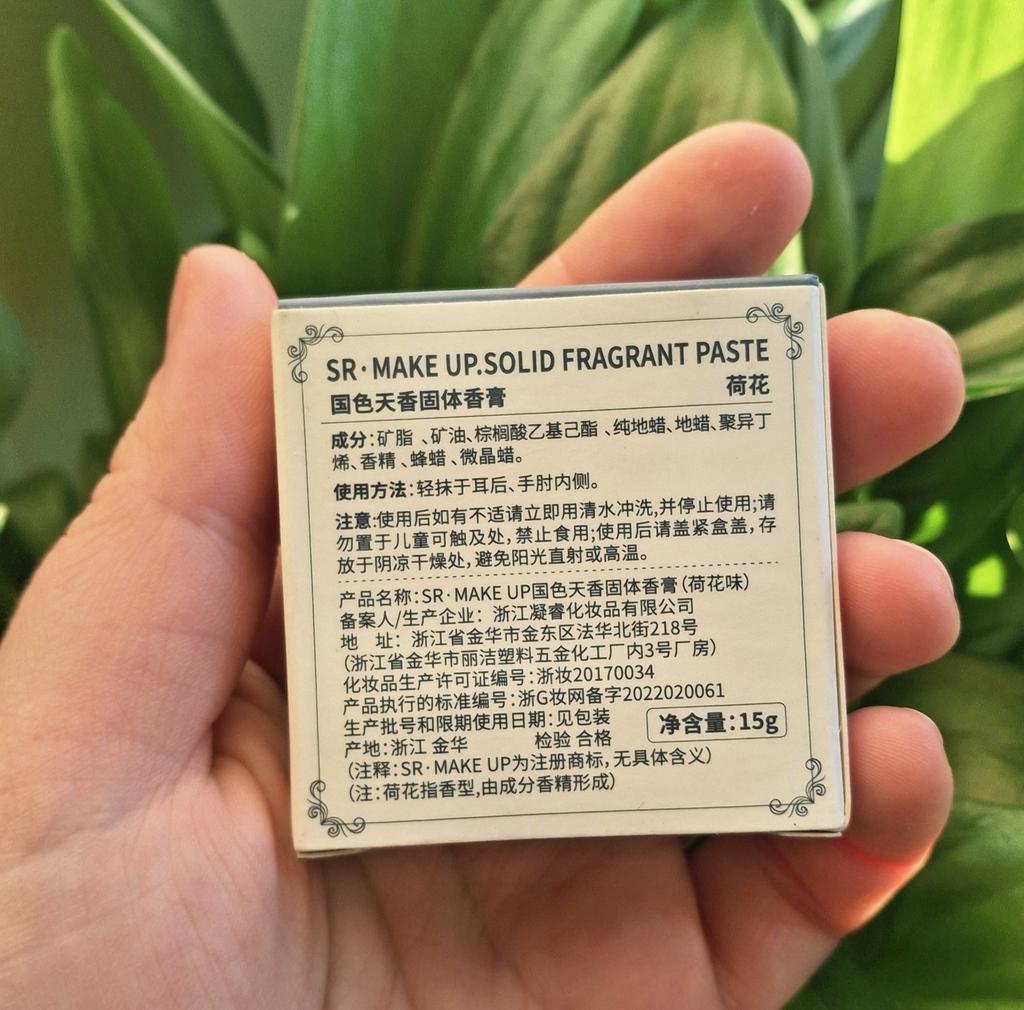 Solid perfume, 15 g with a delicate scent of rose. Perfume - intimate, to feel the smell, you need to smell the body. It is difficult to say about durability, you need to check.
