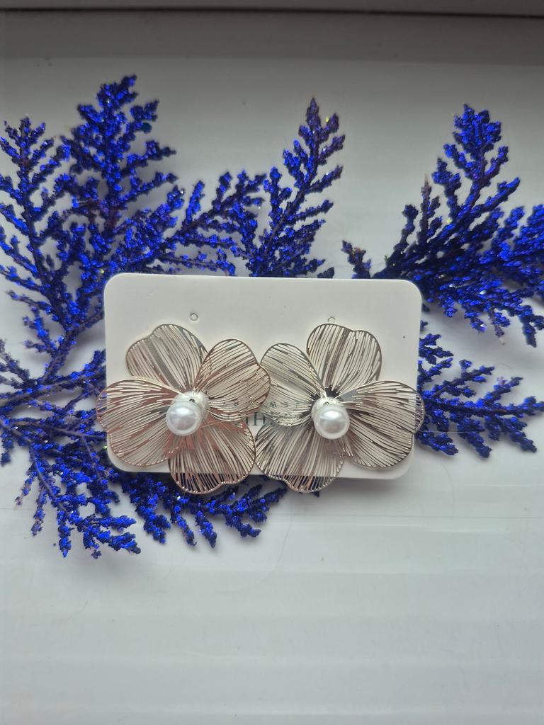 Exaggerated Metal Big Flowers Ginkgo Biloba Leaf Imitation Pearl Geometry Stud Earrings Personality Jewelry Girlfriend Gift